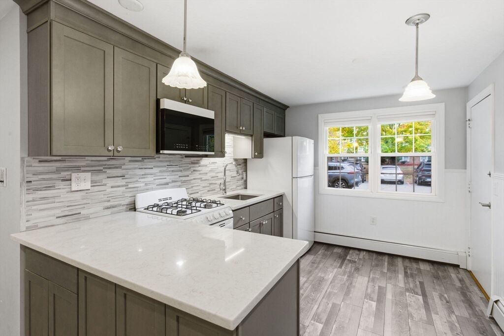 This condominium presents an attractive opportunity to own a home in great condition. Remodeled only a few years back, the kitchen, designed with both aesthetics & functionality in mind, features modern cabinets & white countertops, offering a refined space to prepare meals; the tasteful backsplash adds a touch of elegance, while the kitchen peninsula provides additional workspace & a casual dining spot. The living room provides a focal point for relaxation, featuring an electric fireplace that invites cozy evenings & gatherings. This property, situated on the first floor, also includes 2 bedrooms and 1 full bathroom within its 644 square feet of living area. In building laundry, a deeded parking spot, easy additional parking, & additional locked storage for your convenience. Additionally, the association fee even includes Heat, Hot Water, Gas! This condo is a fantastic opportunity to embrace comfortable living in a vibrant Chelmsford area full of close amenities and easy community