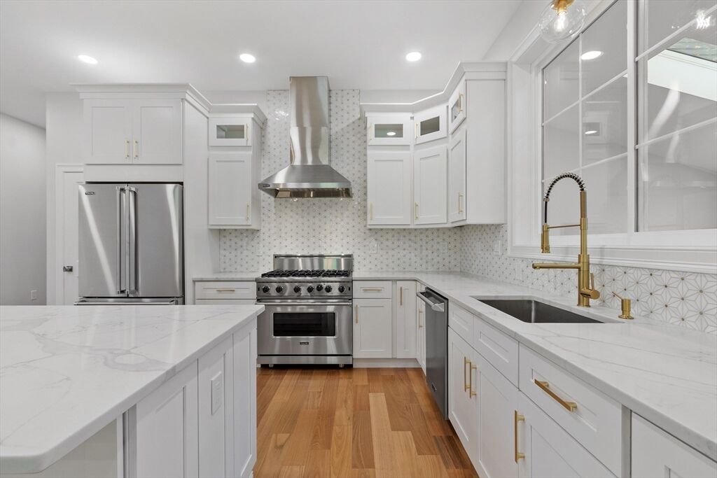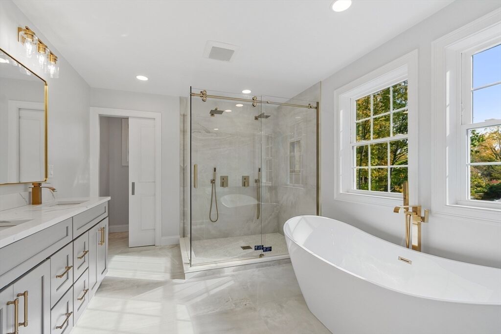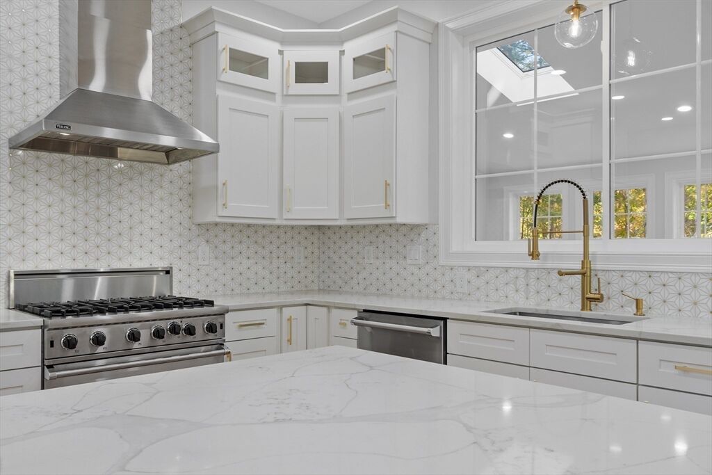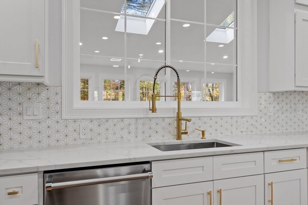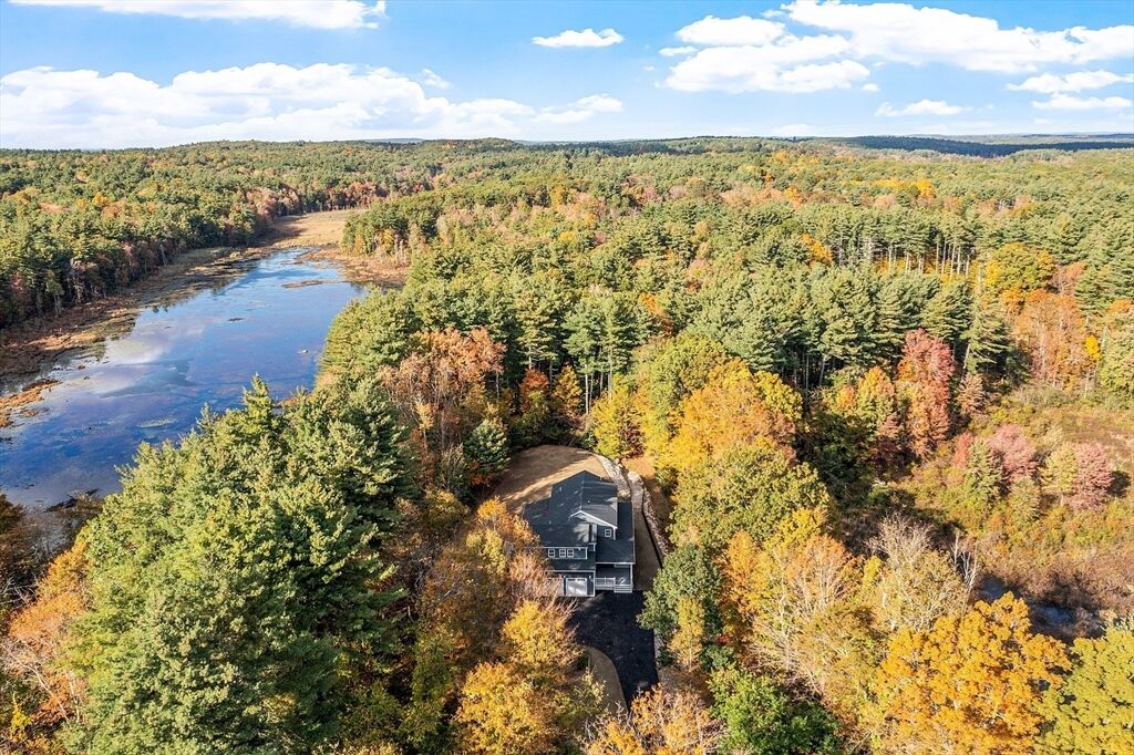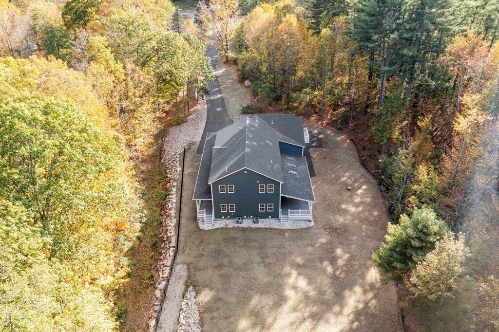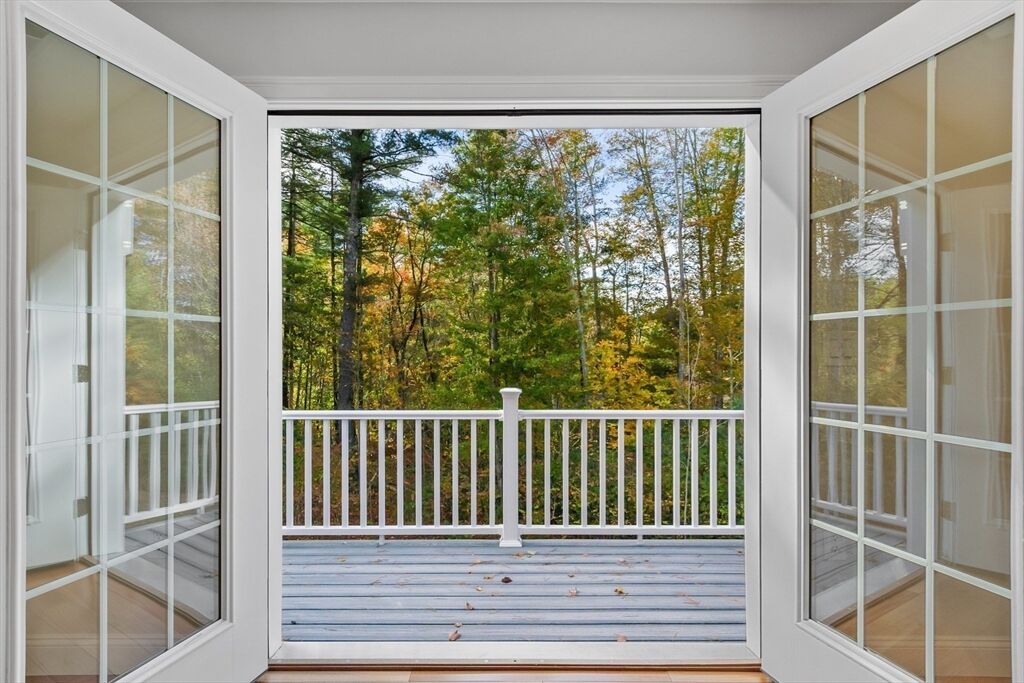 This beautiful 4,300 sq ft Colonial is set on 5.14 wooded acres with a private trail and a brook. The open floor plan flows from the living and dining area into a three-season sunroom and a covered rear deck. The elegant kitchen features Viking appliances, marble and granite surfaces, a gold-accented backsplash, and an adjacent walk-in pantry. Five bedrooms each have a walk-in closet; the main suite includes a private balcony. Additional amenities include an office, laundry, a covered front entry, an attached three-car garage, ample driveway parking, and usable yard areas to enjoy the change of the seasons. A modern design, designed for practical, year-round indoor–outdoor enjoyment.