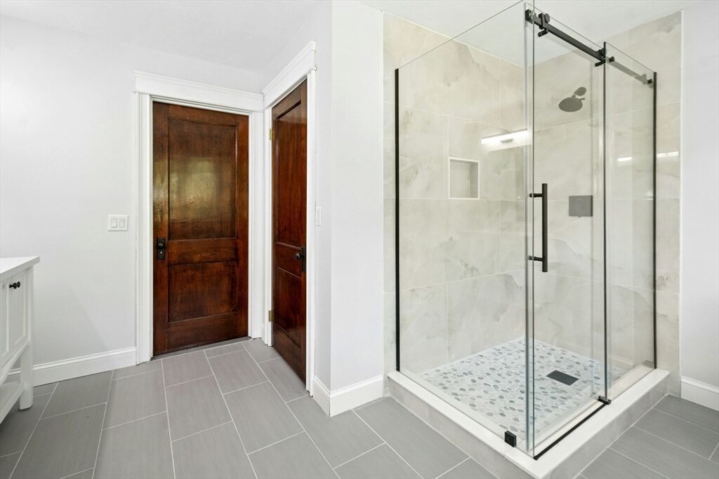 Smashing Contemporary Colonial offers privacy in a serene woodland setting, set back on a quiet side street with conservation trails at your doorstep. Sunlight pours through large Andersen windows, framing peaceful views of nature in every room. The fully remodeled interior boasts a stunning new kitchen with quartz counters, complementary tile backsplash, pantry, and oversized island. A spacious family room with brick fireplace opens to the patio—perfect for entertaining. Upstairs, the spectacular main suite features raised ceilings, skylights, balcony, walk-in closet, and bright spa-like bath. Three additional bedrooms, a new full bath, and laundry complete the second floor, all with gleaming hardwoods. The third floor offers abundant unfinished space awaiting your vision. Enjoy this retreat-like location with town fields, tennis, basketball, Delaney Watershed - four-season trails just steps away. OH Sat. 09/27 & Sun. 09/28 11-1pm