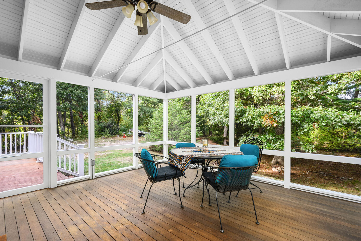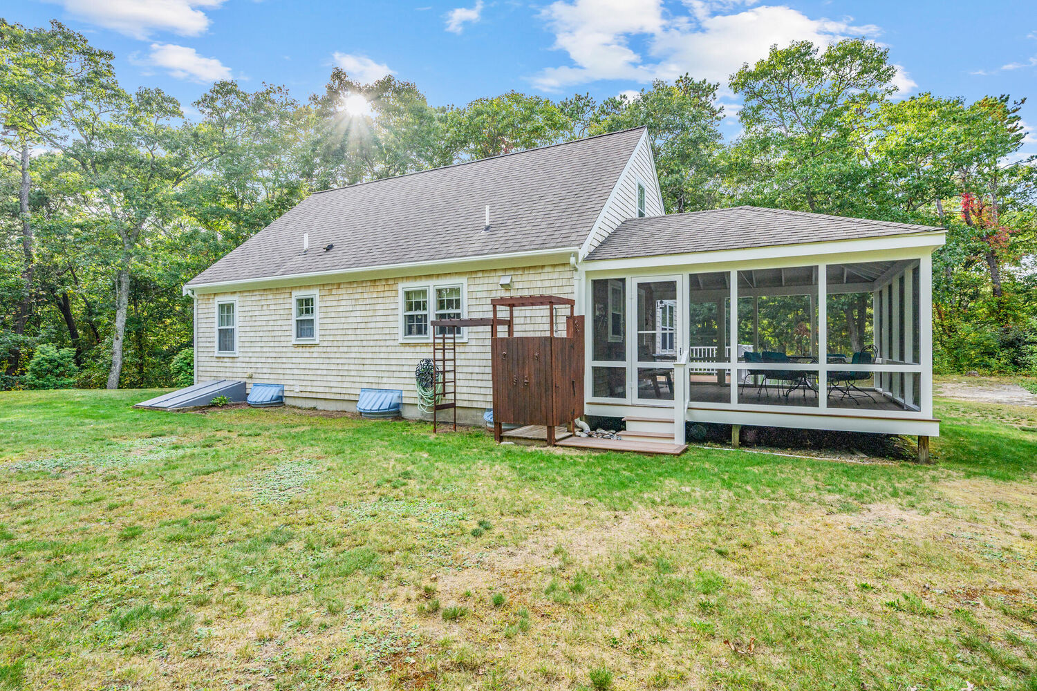 Discover your perfect escape on sought after Old Jail Lane, nestled in this super desirable and convenient Barnstable Village location. This charming single-family home offers a cozy yet spacious 1,144 square feet of living space, featuring 3 bright and airy bedrooms and a beautifully maintained bathroom. Step inside to find gleaming wood floors that flow throughout the home's open and inviting layout. The cathedraled family room and kitchen create a bright and airy space, perfect for both relaxing and entertaining. Imagine unwinding in the large screened porch, an ideal spot for enjoying the serene surroundings with a good book and a cold drink. Set on an expansive 2-acre lot, this home offers ample space for outdoor activities, complemented by the convenience of an outdoor shower. Whether you're considering a year-round residence or a second home, this property is an exceptional choice. This home truly embodies the essence of Cape Cod living, combining tranquility with modern convenience. Don't miss the opportunity to make this beautiful property your own slice of paradise just a short stroll to the wonderful shops, marinas, beach and restaurants of quaint Barnstable Village.