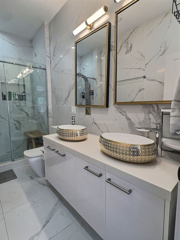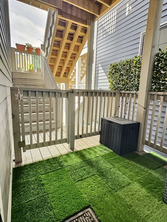 Beautiful bi-level 2Bed+Den located in the heart of East Boston! Investors: currently rented out for $3600!! 200 feet to the Sumner Tunnel, providing access to I93, I90, Back Bay & Financial District. 5 minute walk from the Maverick T-station & 10 min from the waterfront! This fully renovated Condo features hardwood floors throughout, 12 foot ceilings, beautiful Italian tiling, Viking stove, Fridge & appliances. Includes a dedicated floor to dinning and lounging, sporting an open floor plan from the living room into the kitchen which flows nicely into the backyard. The second floor contains two large bedrooms including a master bathroom, a deck walkout, laundry room and a, separate, dedicated den to lounging or a work-from-home station! Both large bathrooms have dual vanities with sliding glass-door showers and a jet-stream shower system. This condo features unparalled storage as it contains 7 closets! Parking becomes a non-issue with this location, abutting two public parking lots!