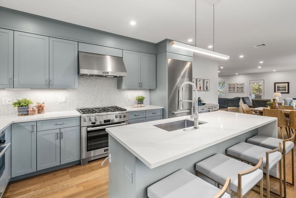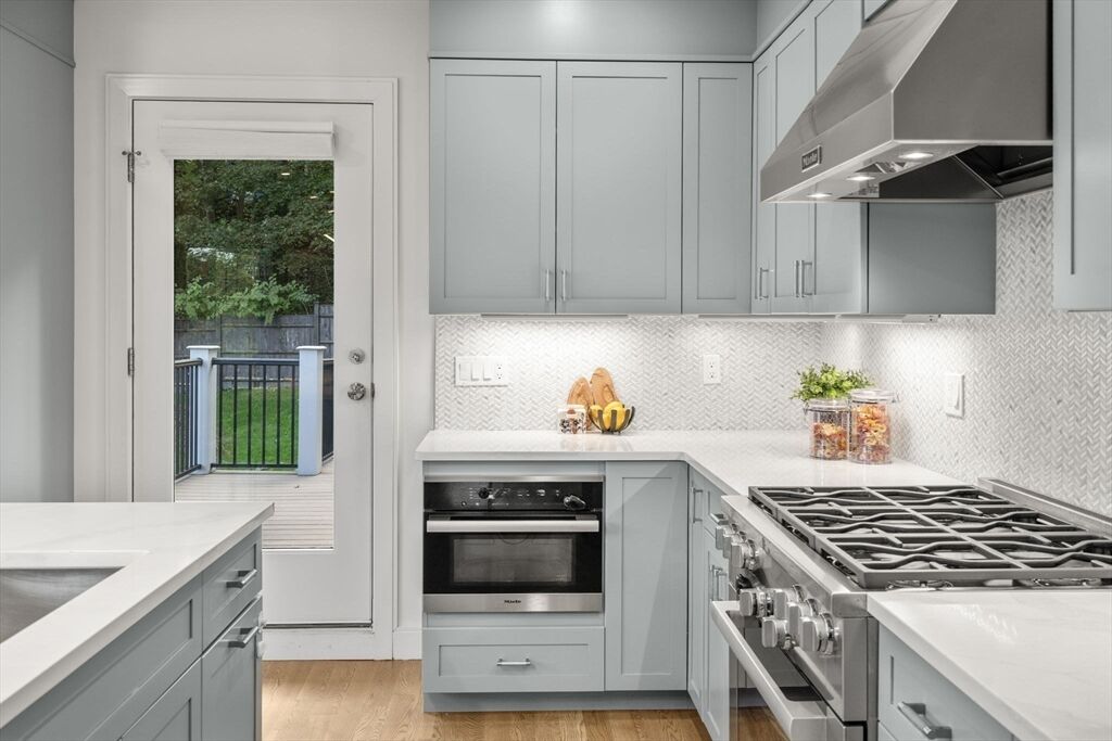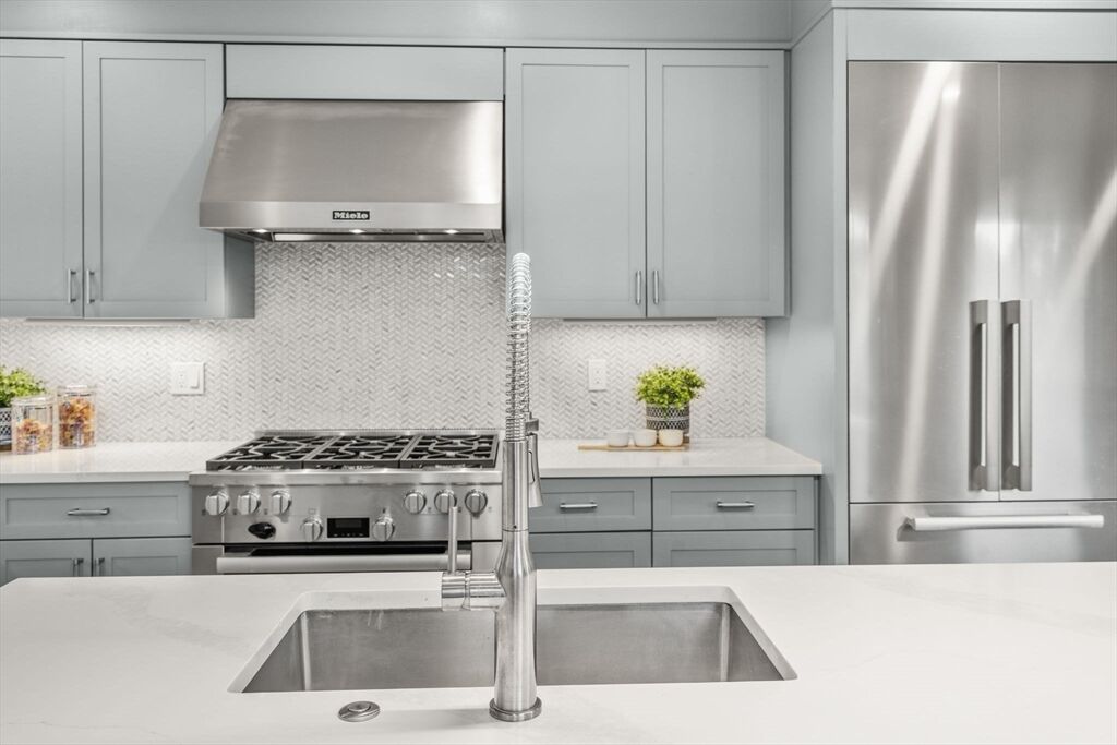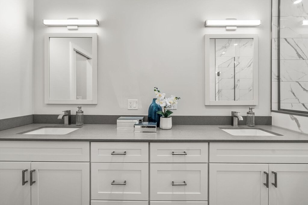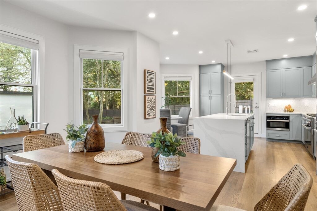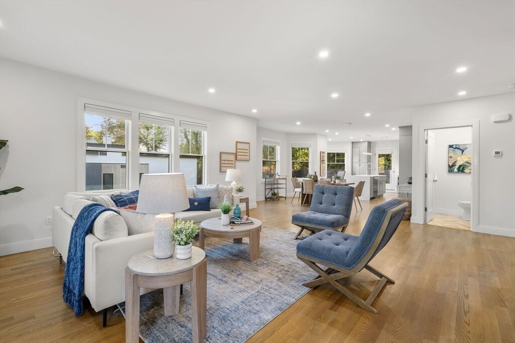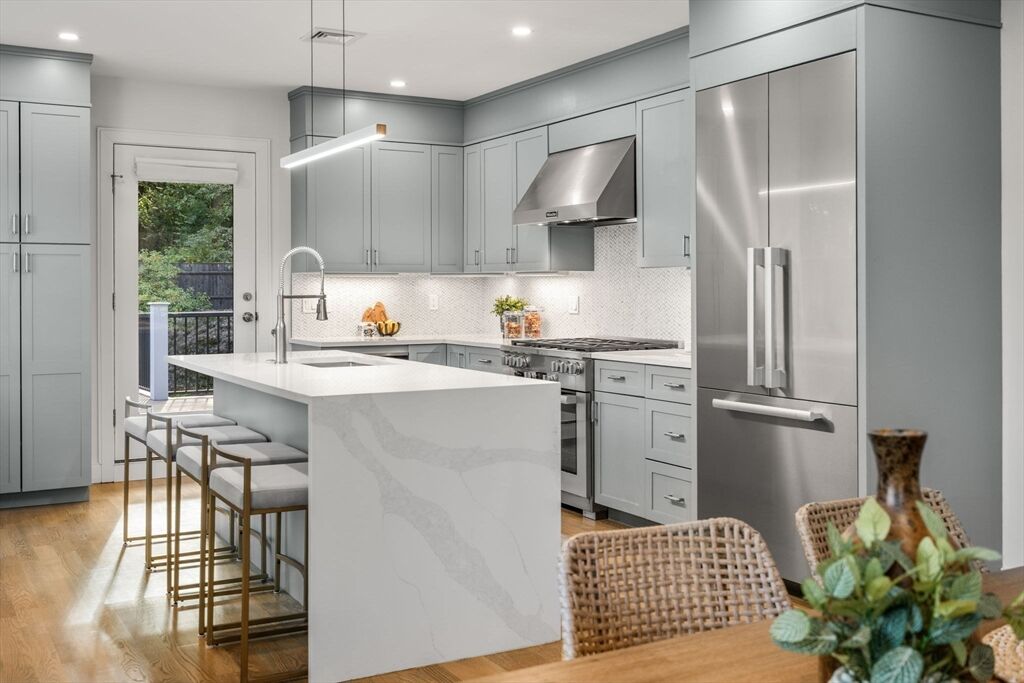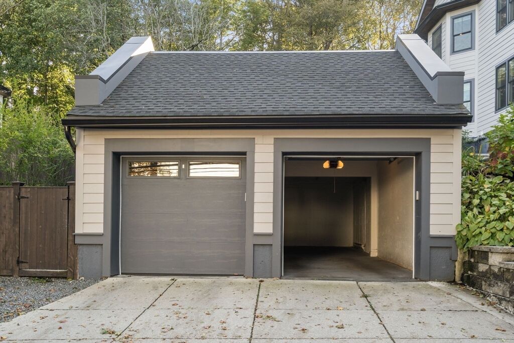 A high-end gut renovation in 2021, this gorgeous condo offers 4-bedrooms, 3.5 bathrooms, huge private fenced yard, front and rear decks, and 2-car garage! A private entrance leads to the main living level, featuring living room w/access to front deck (great city views), family room w/fireplace, dining room, and kitchen w/island, breakfast bar, Miele appliances, and bay window seating area perfect for morning coffee. This level also offers the primary bedroom w/walk-in closet and en suite bath w/double vanity, heated floors. Upstairs there are 3 bedrooms, 2 bathrooms, bonus room/office, laundry. Open the back door off the kitchen to find an oversized deck great for entertaining. This property is set on a double-sized lot, giving each unit its own uncommonly large, fenced yard. Located in a sought-after neighborhood. Convenient to shops/restaurants of Coolidge Corner and Washington Sq, schools, Corey Hill park, green C-line train. Easy commute to Longwood Medical area & downtown Boston.