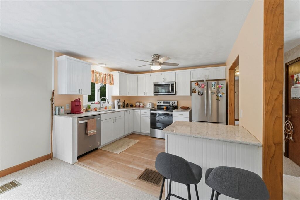Sweet 3 Bed/1 Bath beautiful raised ranch on 8.66 serene ACRES (includes additional 7.62 acre lot). Welcome home to this beautifully maintained property that offers a perfect blend of privacy & nature. The open-concept main level features a spacious living room w/stunning bay window and dining room w/slider leading to your oversized cedar deck - perfect for entertaining or relaxing while overlooking the large, level backyard. The updated kitchen boasts quartz countertops, soft-close cabinetry, and newer stainless steel appliances. The full bath has been recently remodeled with a quartz vanity, tiled flooring, and a shower tub combo. Three well-proportioned bedrooms include 2 w/newer carpeting & fresh paint. The walkout lower-level provides additional living area - ideal for family room, home office, gym, etc. Enjoy the peaceful surroundings, modern updates, and flexible layout this home has to offer. A rare opportunity to own a private retreat that's close to local amenities!