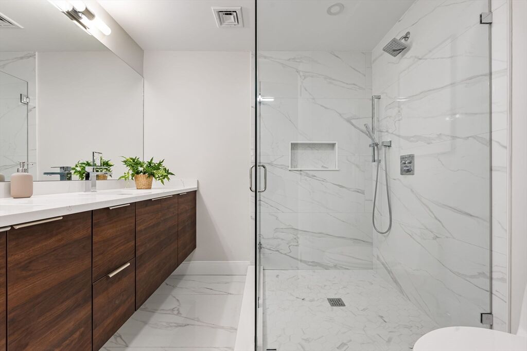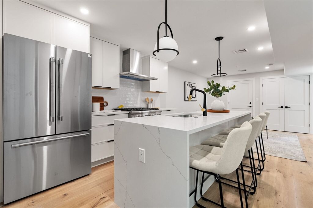 Rare offering, two unit new construction package spanning the top 3 levels of one of the most architecturally striking homes in the North end with 4 Decks. The stunning federal townhouse has been brings a seamless blend of modern luxury/amenities with timeless historic charm to this stunning luxury home. With windows abound, The interior gets amazing light offering a dramatic wide open feel to the sprawling living kitchen dining area. The sharp designer finish package caters to the most discerning buyer. Beautiful kitchens w thermador appliances & custom cabinetry. Boasting 4 Decks, nearly 30 windows & beautiful views of city skyline, North end, & Old north church. 1 rental parking transferable at sale. The two units have a private entrance & can combine to make one enormous penthouse typically unobtainable in North End or a Great hands free rental asset for under $1,000/ft
