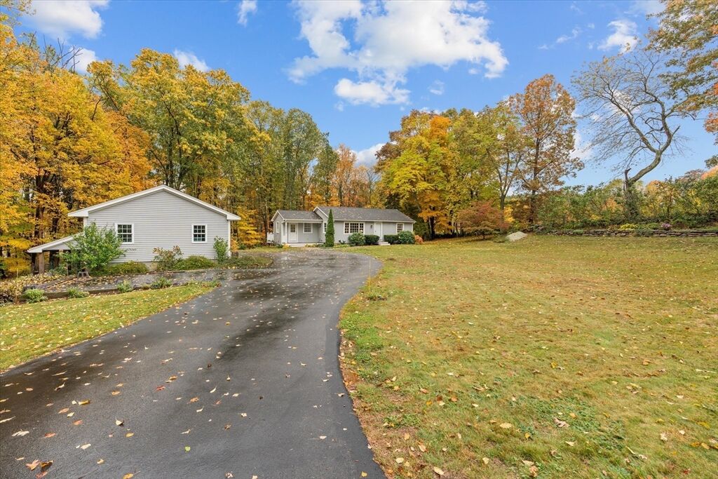 Nestled near Mt. Pisgah and surrounded by beautiful conservation land, this thoughtfully renovated & meticulously maintained full-basement ranch is perfect for nature lovers! Filled with natural light from its numerous windows, this home features an inviting open layout that seamlessly connects the kitchen, dining, and living areas. A fabulous sunroom overlooks the amazing private level yard & composite deck. Hardwood floors in the main living area and bedrooms. Gas Fireplace. Expanded two-car garage added in 2016 with electricity & covered storage in the back, has potential for heat. Young furnace, new oil tank, & hot water heater, & so much more-see updates list- Full, clean, unfinished basement offers wonderful potential for future expansion. Set back from the street with direct access to nearby walking trails, and surrounded by horse farms yet only 3 miles to 495 and the Hudson Commons, which has everything you need- this is truly a special property!