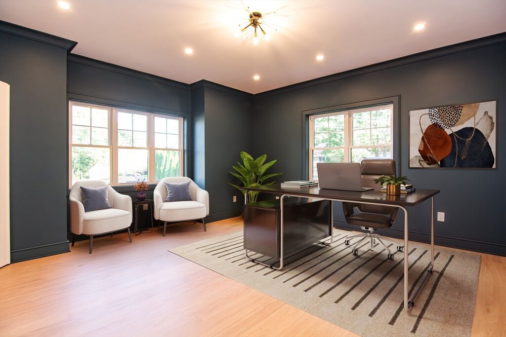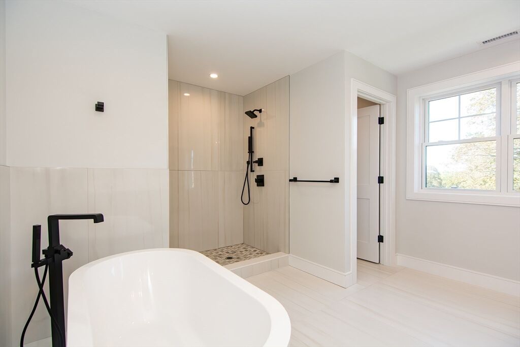 This exceptional 4-bedroom, 4.5-bath residence redefines new construction with its refined craftsmanship, designer finishes, & thoughtful floor plan. The main level includes a color-drenched office/sitting room, open concept design with chef’s kitchen, dining area and family room w cathedral ceiling & gas fireplace, and a slider to a deck overlooking a fenced yard. Half bath is just off the kitchen, plus mudroom & access to an oversized 2 car garage. 4 bedrooms upstairs, including a guest suite with full bath, & primary suite with spa bath & huge walk-in closet/dressing room. A full bath with tub and 2 bright bedrooms with enormous double closets complete this level. The lower level surprises with a large flex space, additional room for a potential 5th bedroom, gym or office, full bath, and separate entry with private sunken patio. First showing at the 1st Open House on Saturday, 10/11 and Sunday, 10/12 from 11:00 AM-12:30 PM.