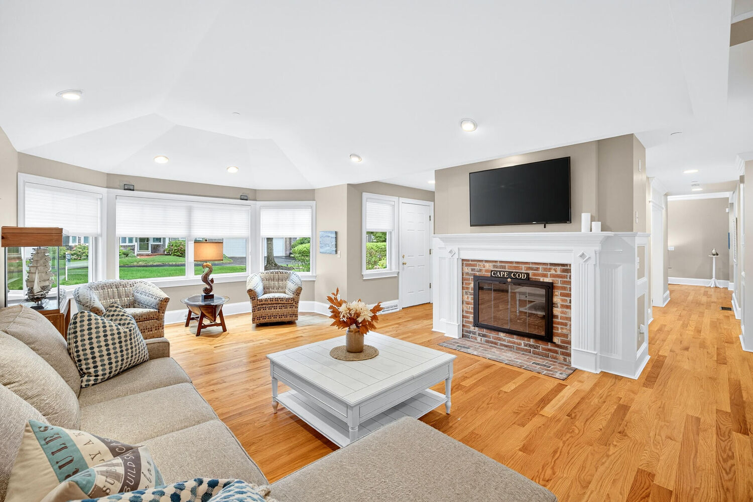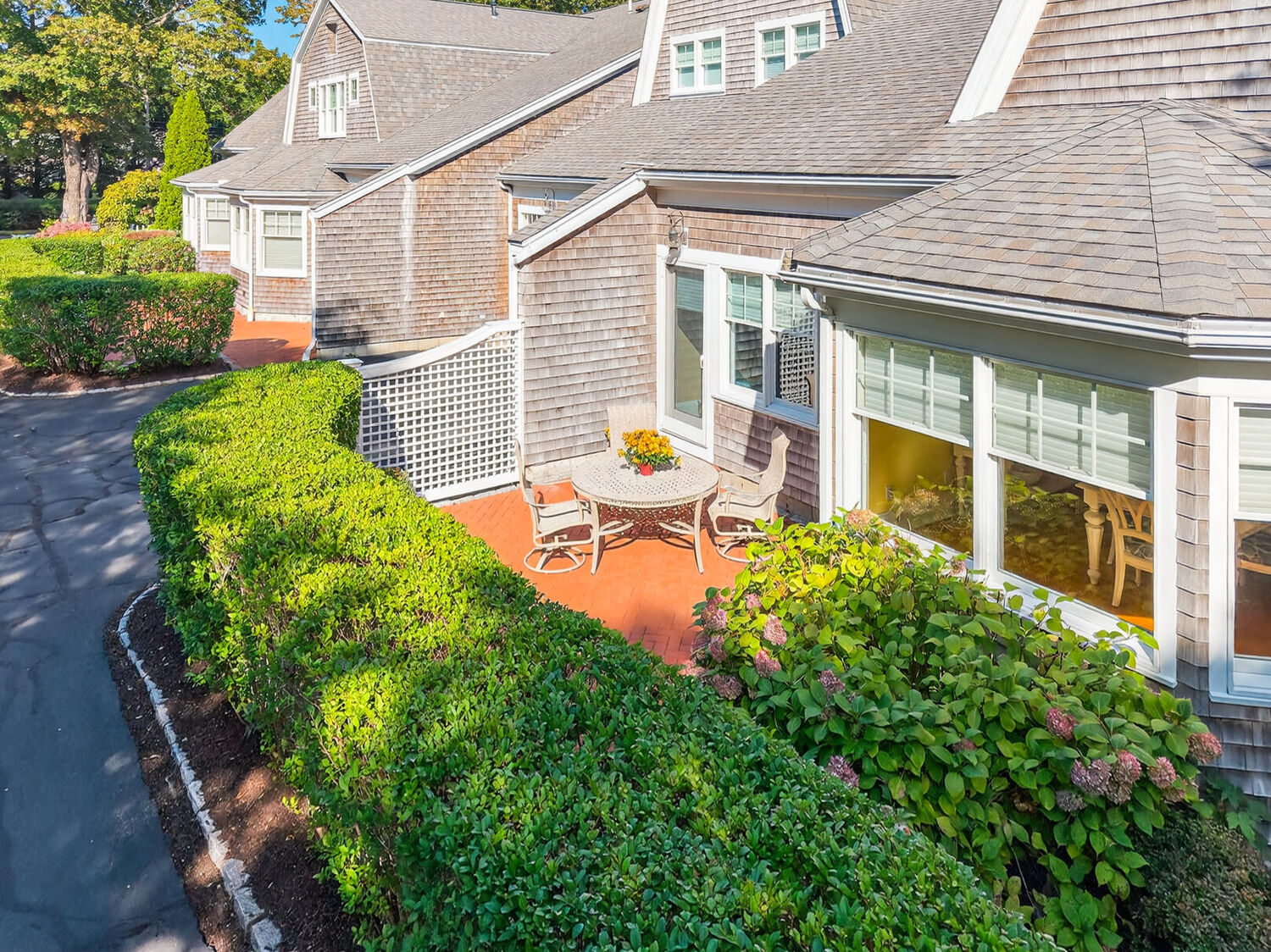 It is rare to find a residence available in the coveted Cove at East Bay, offering premier village living just minutes to the charming shops and dining of Osterville and the sandy shores of Dowses Beach. This Cape Cod-style townhome combines elegance with low-maintenance convenience--perfect for downsizing or right-sizing without compromise. The welcoming entry with classic box-panel detail opens to a light-filled main level featuring hardwood floors, a spacious living room with tray ceiling, bay window, custom millwork, crown molding, and gas fireplace. A formal dining room framed by rich millwork and transom windows is ideal for entertaining, while the chef's kitchen with granite counters, stainless appliances, and breakfast bar flows to a family room with soaring ceiling and access to a private brick patio. The first-floor primary suite offers spa-like comfort with generous closets. Upstairs includes two guest bedrooms, an office/exercise room, and a game room. With 3 bedrooms, 3.5 baths, a two-car garage, and sophisticated coastal living, this is a rare opportunity in the heart of Osterville