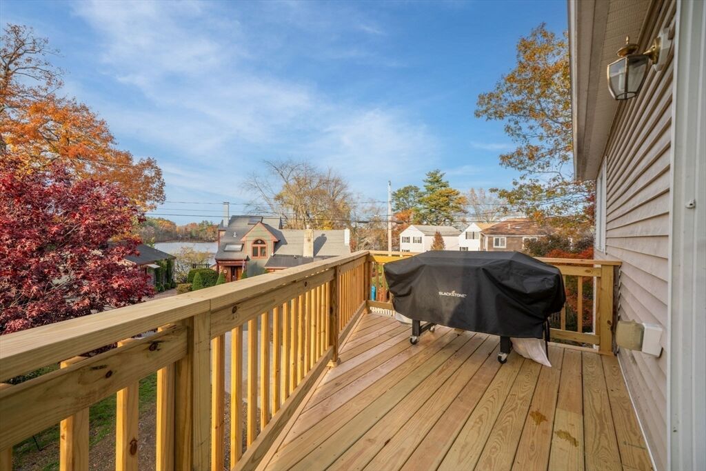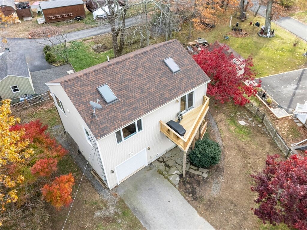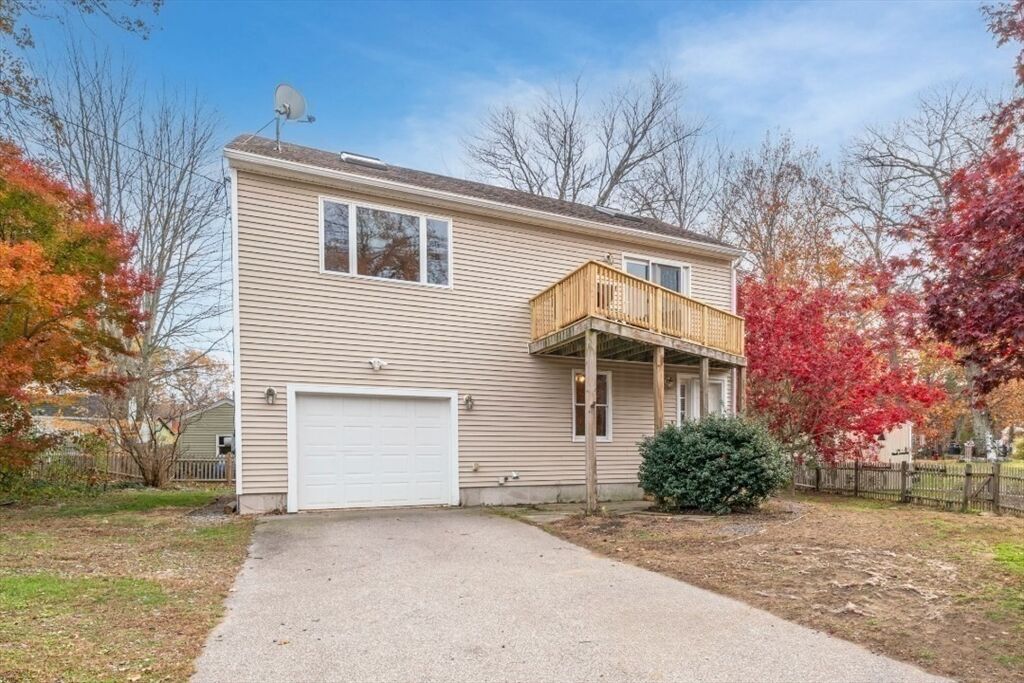 Lake Attitash access a few short steps away! Enjoy the peaceful tranquility of lake life in this turn-key home. Easy to maintain vinyl siding and roof done in 2018, this home is ready for you to unpack and enjoy the views of the water. The yard is partially fenced to enjoy some outside BBQ's or get your four-legged friends outside. Two separate, recently redone balconies bring nature to you. You'll love the garage for those snowy winter nights coming our way. Inside you enter a large mudroom that currently doubles as a home office. This level has one large bedroom and 3/4 bath. This setup would work wonderfully for roommates wanting some separate space. Upstairs is the updated kitchen with breakfast bar and tons of natural light. The large living room has skylights for year round sunshine. There is another large bedroom and full bath. Must see! Priced to sell! Be part of this lakeside community.
