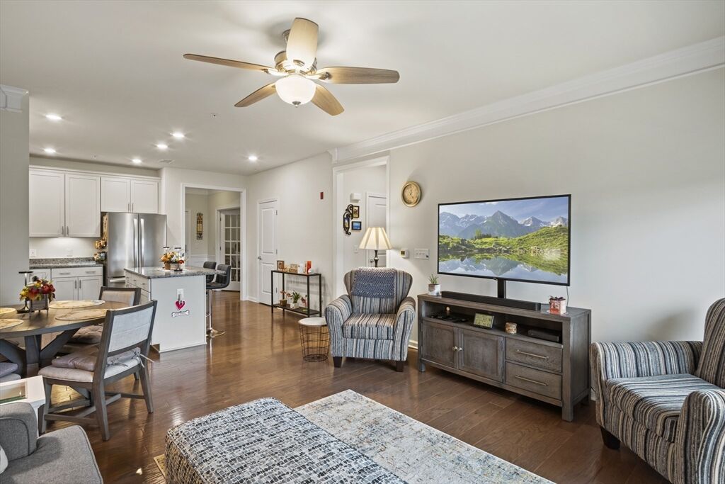 Enjoy an exceptional location at Chauncy Lake! Inside, you’ll find an open-concept layout with hardwood floors, high ceilings, and a private balcony that brings in abundant natural light. The kitchen features granite countertops, stainless steel appliances, and a generous island perfect for casual dining or entertaining. A flexible bonus room expands your options - use it as a guest room, office, or hobby space. The bedroom includes a walk-in closet, and the modern bath completes the home’s comfortable design. This unit includes covered garage parking plus a storage unit, a valuable perk! Ideally situated with easy access to the clubhouse and the scenic walking trails surrounding Chauncy Lake, it offers effortless access to fitness, social gatherings, and serene outdoor spaces. Combined with Del Webb’s standout amenities, pool, fitness center, courts, and a vibrant calendar of community events, this home truly has it all!