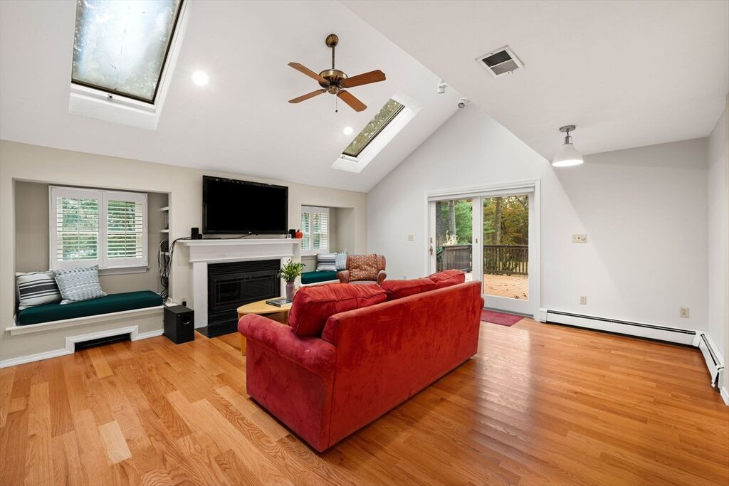 Beautifully updated 4 bedroom colonial located in a cul-de-sac neighborhood in the desirable Bancroft School District. Close to highways & Harold Parker State Forest- entrance just steps out your front door! The sunlit open floor plan boasts a recently renovated eat in kitchen w/quartz counters, oversized island, 6 burner gas range and opens to the cathedral family room w/skylights, fireplace & slider to your deck and yard...the perfect place for entertaining family & friends! The dining room, living room w/fireplace, office, sitting room w/coffered ceiling & 1/2 bath complete this level. Upstairs you will find an oversized primary b.room w/private bath & balcony, 3 addt'l bedrooms, full bath & laundry as well as a bonus room that could be a playroom, media room, workout room or all 3! Great space in the finished lower level, 2 car garage, hardwood, pocket doors, new roof, newer heating system and so many more updates & details make this a home you don't want to miss.
