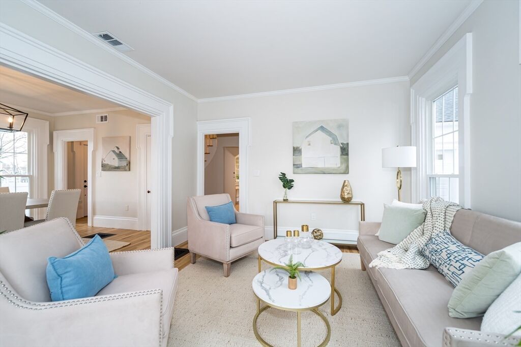 Newly updated, attached Victorian home has 3 bedrooms and 2.5 bathrooms, an attached, oversized 1 car garage with lots of storage. This home is filled with charm and period details. There's a newer kitchen with an island, stainless steel appliances & quartz counters, sun-filled living and dining rooms with floor to ceiling windows, an office plus a half bath. Upstairs there is a newer main bath with double vanity, soaking tub & large shower, the primary bedroom, 2 additional bedrooms, a second full bath and laundry. There're gleaming hardwood floors throughout the home and its interior has been freshly painted. Gas heat and central air conditioning too! Located in the heart of Natick Center and just steps to shops, restaurants, the Morse Library, Natick Center for the Arts, the Natick Town Common and the farmer's market. Convenient to all commuter routes and fabulous shopping. The commuter rail station is just .2 mi away. Benefit from excellent Natick schools as well.