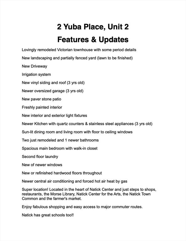 Miscellaneous Information for 2 Yuba Pl Natick, MA 01760 |