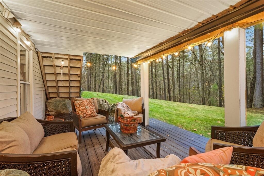 Located in a highly desirable E. Boxford cul-de-sac neighborhood, this 4BR, 2.5BA Cape offers 4,174 sq ft of beautifully designed living space on 2 private acres. A dramatic two-story foyer with cathedral ceiling and large closet leads to the open floor plan featuring an eat-in kitchen with granite counters, center island & stainless appliances. The stunning family room showcases a vaulted, beamed ceiling, indoor balcony overlook & floor-to-ceiling stone fireplace that anchors the space. Enjoy the first-floor primary bedroom with 2 walk-in closets. The exceptional lower level includes custom woodwork, a media area, game room & access to outdoor spaces. Enjoy a composite deck off the kitchen plus a covered lower-level patio ideal for year-round relaxation and entertaining. Updates include remodeled bathrooms (2020), stunning overhead lighting, roof (2019), HVAC (2023) & whole-house generator. Built in 1997 and meticulously maintained, this home blends comfort, style, and generous space.