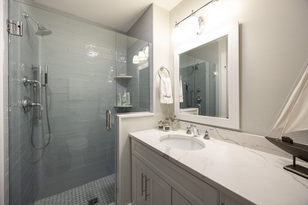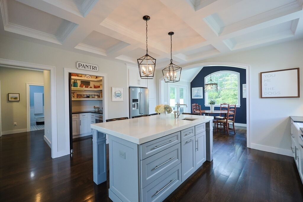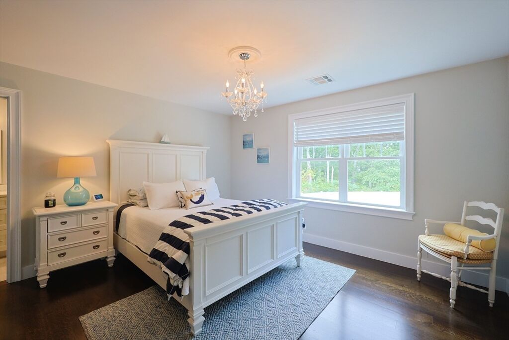 Welcome to 20 Crestview Drive; a stunning custom-built Cape-style home completed in 2020, offering over 3,400 sq ft of refined living space with views of Cape Cod Bay. Owned by the builder/designer, this home blends thoughtful craftsmanship with elegant finishes. Set atop a hill in a well-established neighborhood, it features deep, classic hardwood floors, a first-floor primary suite with walk-in closet and incredible en-suite bathroom with a standalone tub and oversized walk in shower. The vaulted great room and stone wood-burning fireplace lead to a beautifully crafted gourmet kitchen equipped with high-end stainless appliances, walk-in pantry, and quartz/granite countertops. Each upstairs bedroom includes a private en-suite bath with tiled walk-in shower. Outside, enjoy a fenced-in yard, heated saltwater pool, and two-car garage. Full-height unfinished basement offers future potential. Just 1.5 miles to East Sandwich Beach, this move-in ready home is ideal for families and more.