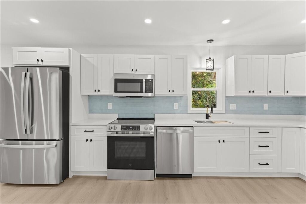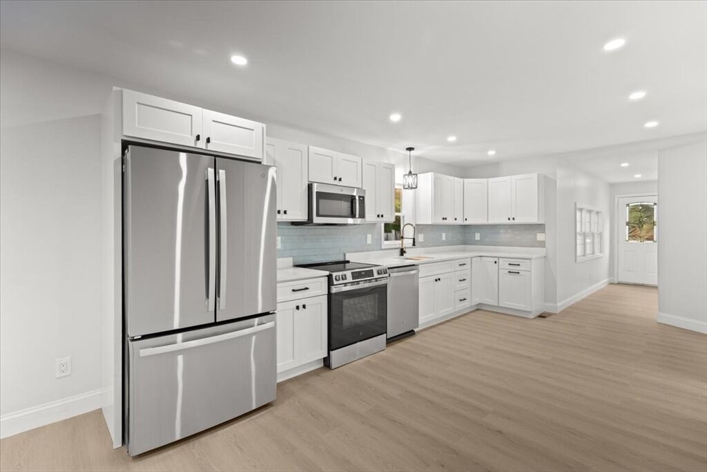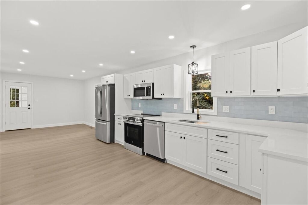 Move right in and enjoy the best of comfort and convenience! This 4-bedroom, 2-bath home offers over 1,400 sq. ft. and blends classic charm with modern upgrades. While the main level features brand-new wood laminate flooring throughout, the kitchen has white shaker cabinets, quartz countertops, and stainless-steel appliances, plus an open floor plan that seamlessly connects the kitchen, dining, family room, primary bedroom & a three-season porch—perfect for morning coffee or summer evenings. Upstairs, you’ll find four bedrooms and a full bath. Outside, enjoy over 1.5 acres of private space. Move right in and enjoy the best of comfort and convenience! No Showings until Open House Fri. Oct. 3rd, 4:30pm-6:30pm & Sat. 10/4 11am-1pm