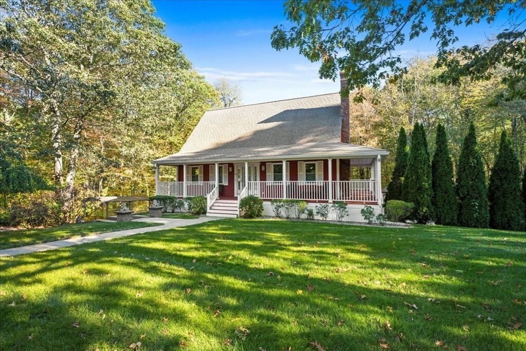 Welcome to 20 Leela Ln, a stunning 3-bedroom, 2.5-bath Cape located in a quiet neighborhood setting in Leicester. This home offers incredible curb appeal with its inviting wraparound farmer’s porch and a wooded backdrop that provides privacy and a serene atmosphere. Inside, you’ll find a spacious layout perfect for today’s lifestyle, featuring a bright living area, a large kitchen, and a dining space that flows seamlessly for entertaining. The primary suite includes a full master bath, while the finished basement offers even more living space for a playroom, home office, or gym. Step outside to enjoy a large backyard or host gatherings on the expansive deck designed for outdoor entertaining. A two-car garage provides both storage and convenience. With its combination of charm, space, and location, this home is the perfect place to create lasting memories.