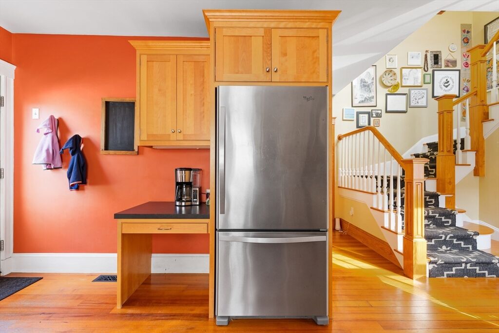 Great location in Natick Center. This home blends character & modern comfort and offers the best of downtown living. Enjoy the welcoming front porch with its charming swing, perfect for unwinding. The bright living room offers abundant southern light, and the renovated eat-in kitchen features stainless steel appliances, wood cabinetry, a dining nook and a built-in hutch. A formal dining room, convenient first-floor bedroom and updated full bath complete the main level. The second floor, added in 2003, boasts a spacious primary bedroom with a large walk-in closet, an updated full bath with a soaking tub and tiled shower, plus a second generously sized bedroom with a double closet. The unfinished basement provides great versatility for future living or fitness space and features a built-in workbench. Outdoor highlights include an oversized deck ideal for gatherings, a fenced yard, a one-car garage, and a storage shed. Just 1/2 mile to the Natick Center Train Station to Boston.