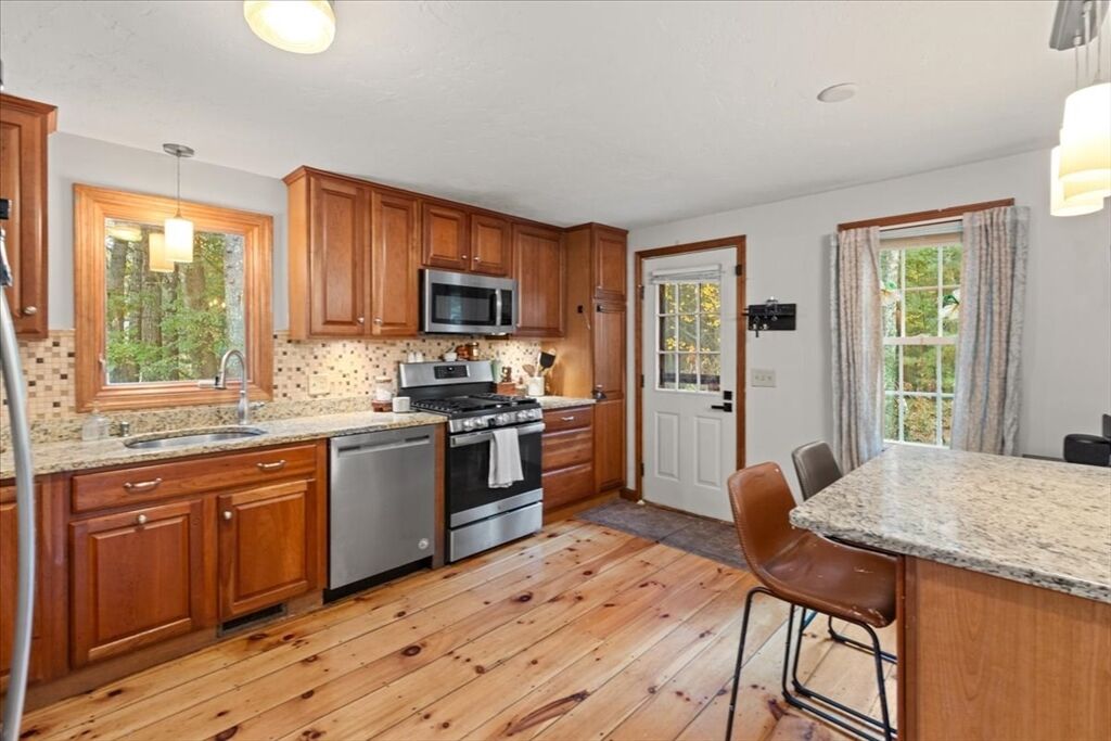 Great Kingston location! 3 bed, 2 bath Cape tucked away at the end of a cul-de-sac in a private setting. Conveniently located near shopping, commuter rail & Rt 3. Roof & furnace less than 10 years old; windows replaced 5 years ago. Features an open floor plan, hardwood floors on the 1st level, generous room sizes & a separate dining area. Step out from the kitchen to a private deck overlooking the backyard. Partially finished basement offers extra living space & plenty of storage. Add your personal touch with some minor cosmetics and make this home your own. This is your chance to get into Kingston at a great price!