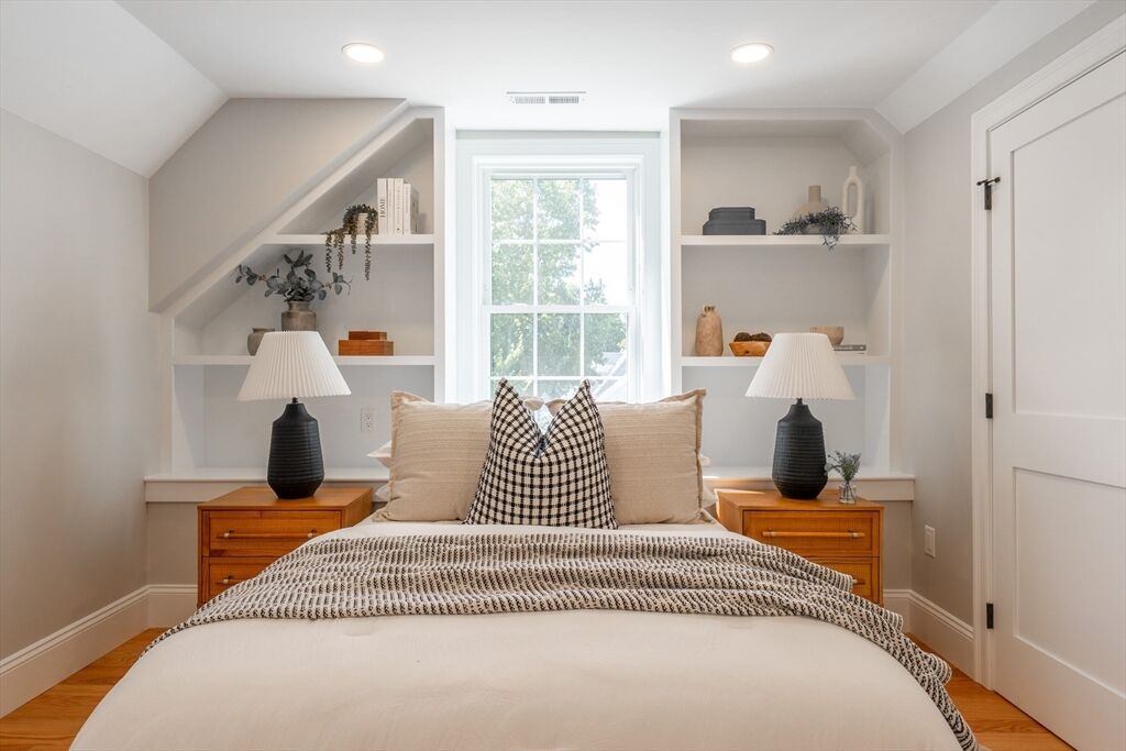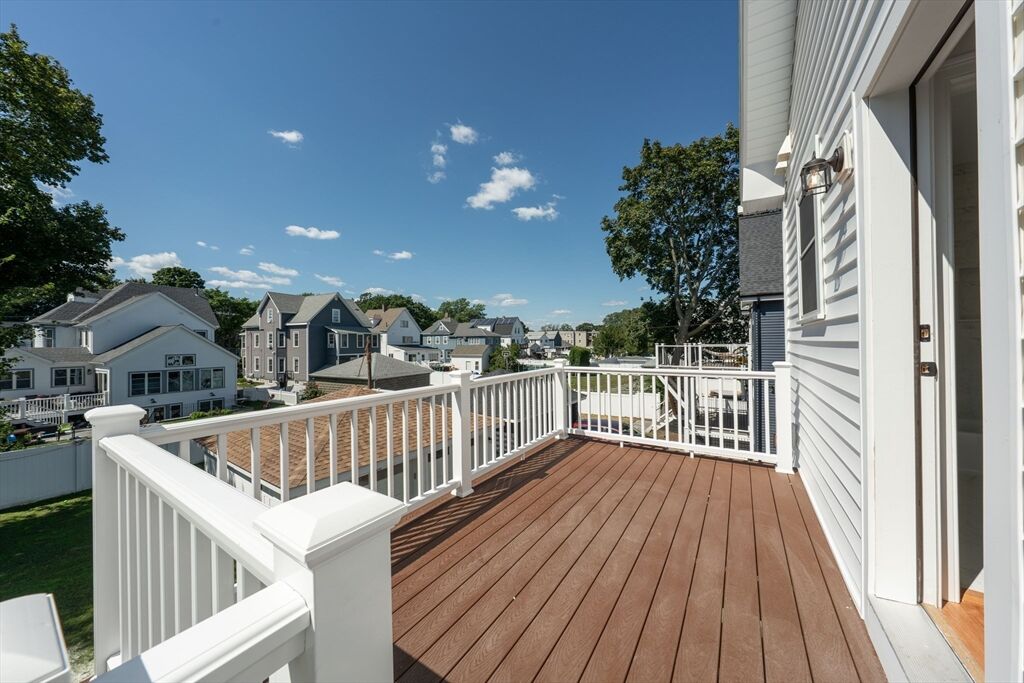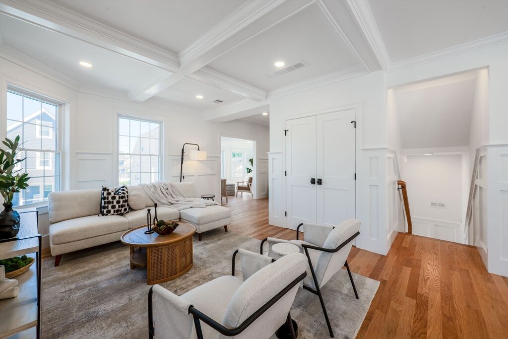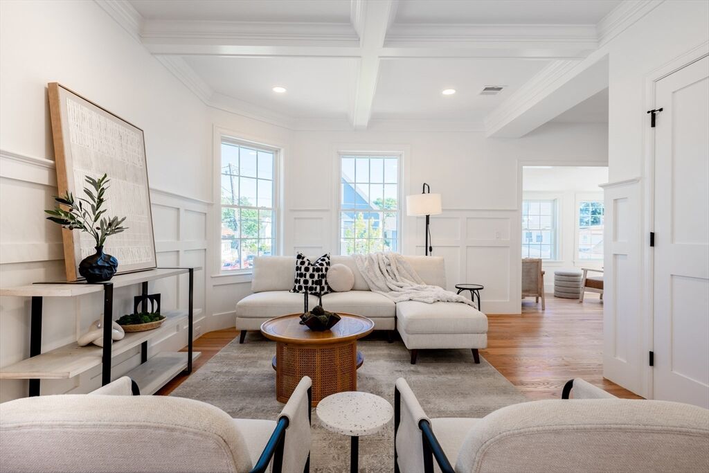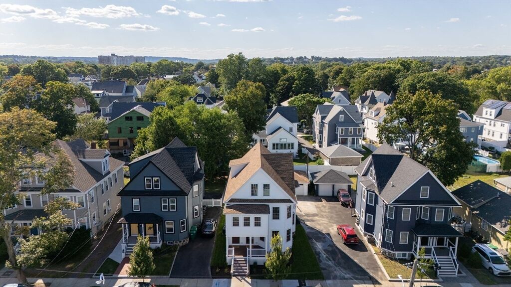 Completely reimagined from the studs up, this two-family home blends new-construction comfort with timeless Medford charm. Together offering 9 bedrooms, 5 full and 2 half baths across 4,000+ sq. ft., each residence features open-concept living with coffered ceilings, wainscoting, oak floors, and custom millwork. Kitchens include white shaker cabinetry, Bosch appliances, and quartz countertops. The upper unit spans two levels with 5 bedrooms and a bonus room; the lower unit includes 4 bedrooms and a full-height finished lower level with a second living area. Private rear decks, 2 garage spaces plus 2 outdoor spots, high-efficiency gas HVAC, Navien tankless hot water, irrigation, and smart home features complete the package—all near I-93, parks, and Medford favorites.