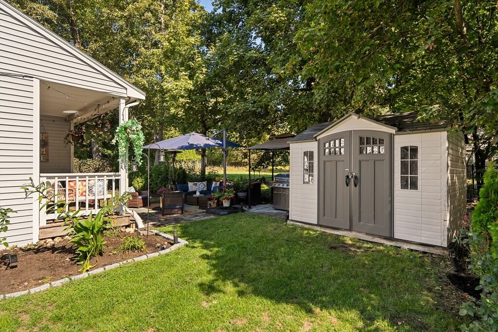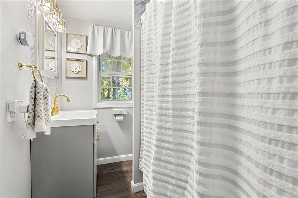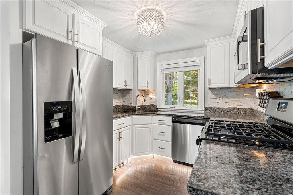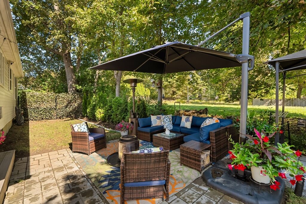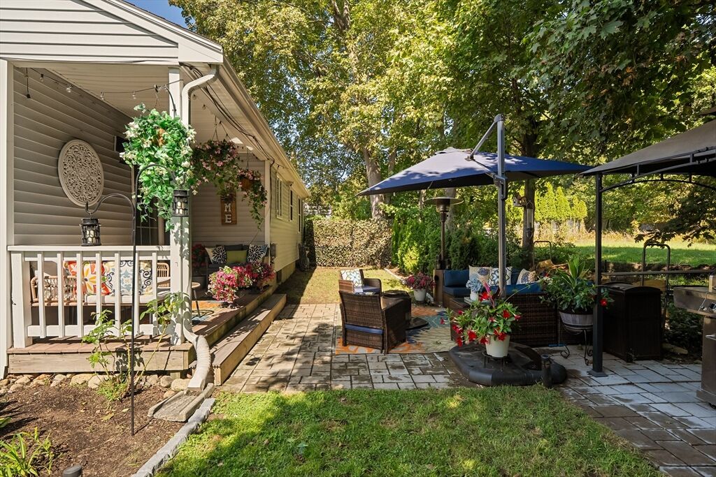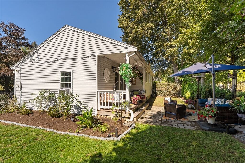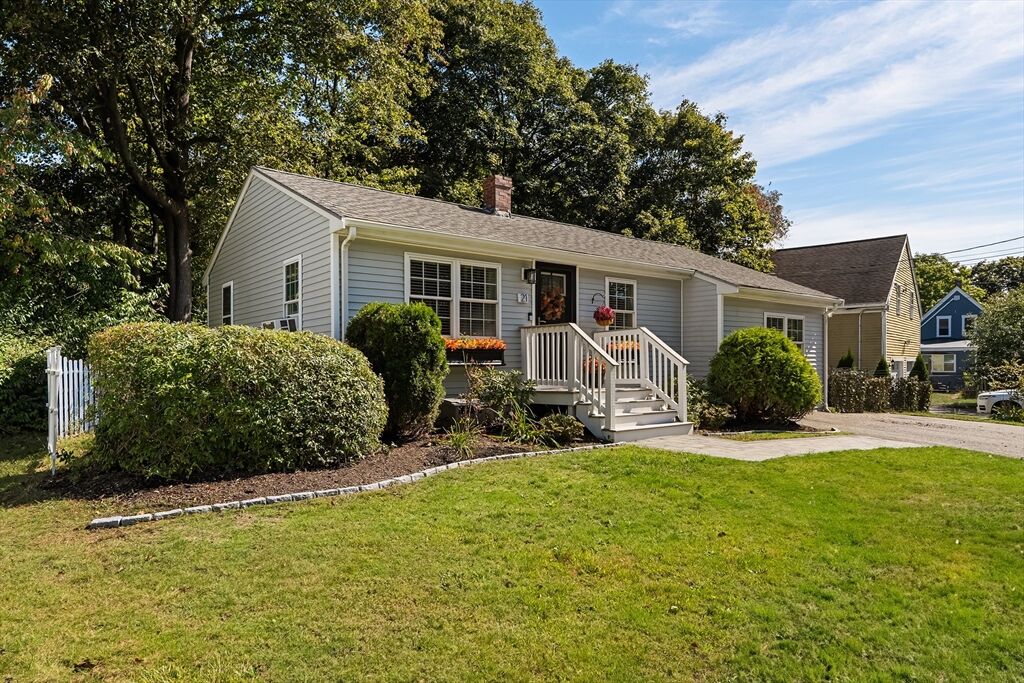 Charming 2-bedroom ranch tucked on a quiet, conveniently located side street! Curb appeal shines with beautiful landscaping, window boxes, a paver walkway, and updated front steps. Inside, enjoy a bright and open layout featuring a pretty kitchen with stainless steel appliances, gas cooking, and easy flow into the living and dining areas. The primary bedroom boasts vaulted ceilings and abundant natural light. A cozy mudroom opens to a covered porch overlooking the paver patio — perfect for relaxing or entertaining. The lower level offers a spacious finished family room with recessed lighting and a double closet, plus a clean, unfinished area for excellent storage. Ideally located just minutes to Route 3, top South Shore shopping, and dining. Enjoy the ease of one-level living — the perfect home for first-time buyers or those looking to downsize. Stylish updates and modern touches throughout make this home truly move-in ready!