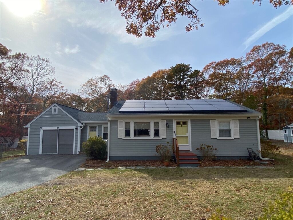 You'll love single level living in this ranch style home priced below 92% of all the homes for sale in Barnstable County! Features: a level .45 acre cleared corner lot. New 50 Year Warrantied Roof installed in 2019. Natural gas cooking and heating. Central Air conditioning for comfy summers and wood burning fireplace for cozy winter nights. Has money saving Sunrun Solar Panel system generating 10,000 Watts with battery back-up installed in 2020 which satisfies 77% of electricity needs. Full, dry basement (Painted Walls, Floor) with office area, TV lounge area, 2nd fridge and storage cabinets. Enjoy barbeques, get togethers and gardening in a huge fenced-in back yard. Side yard can store boats, work vehicles or RV. Located outside the busy Hyannis commercial areas in a neighborhood of single family homes only a couple miles from several southside saltwater beaches, the Mall, Hospital, Route 6, Main Street Restaurants, Melody Tent and Island Ferries and 3 Public schools.