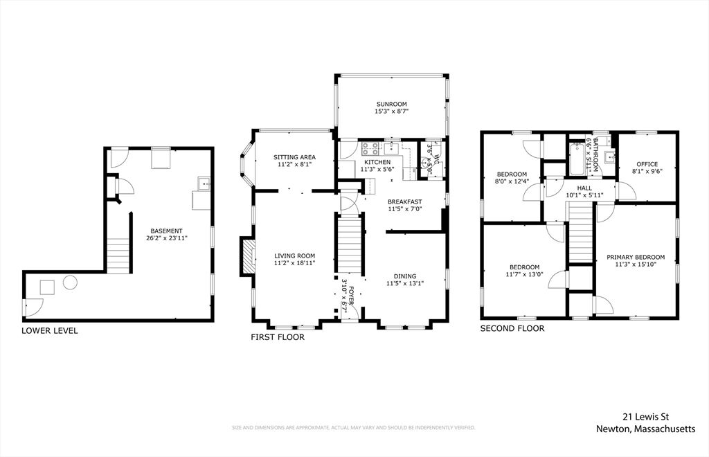 Rooms Information for 21 Lewis St Newton, MA 02458 |