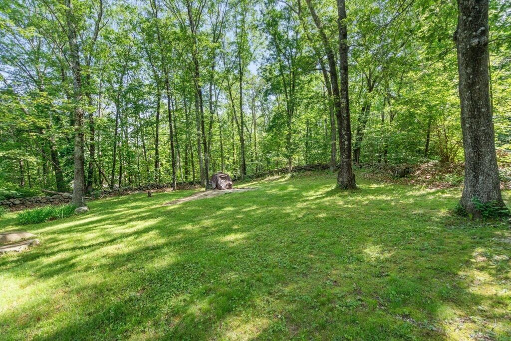 *****11/23 OPEN HOUSE CANCELLED - OFFER ACCEPTED.***** Welcome to 215 Chestnut Street, a spacious split-entry home on a private 1.64 acre lot in a quiet area of Uxbridge. This property offers three bedrooms, one and a half baths including an ensuite half bath, and over 1,400 square feet of living space. The main level features a bright living room with a wood burning fireplace insert, laminate and carpet flooring, a spacious kitchen with stone counters, and a separate dining room with access to a huge sun and screen room overlooking the yard. The lower level includes a finished bonus room and a 400 sqft partially finished second living area with a beautiful stone fireplace that is ready to be brought back to a cozy and inviting space. Updates include a roof from 2021, a well pump from 2022, and an oil tank installed in 2024. Solar assisted hot water is also in place.