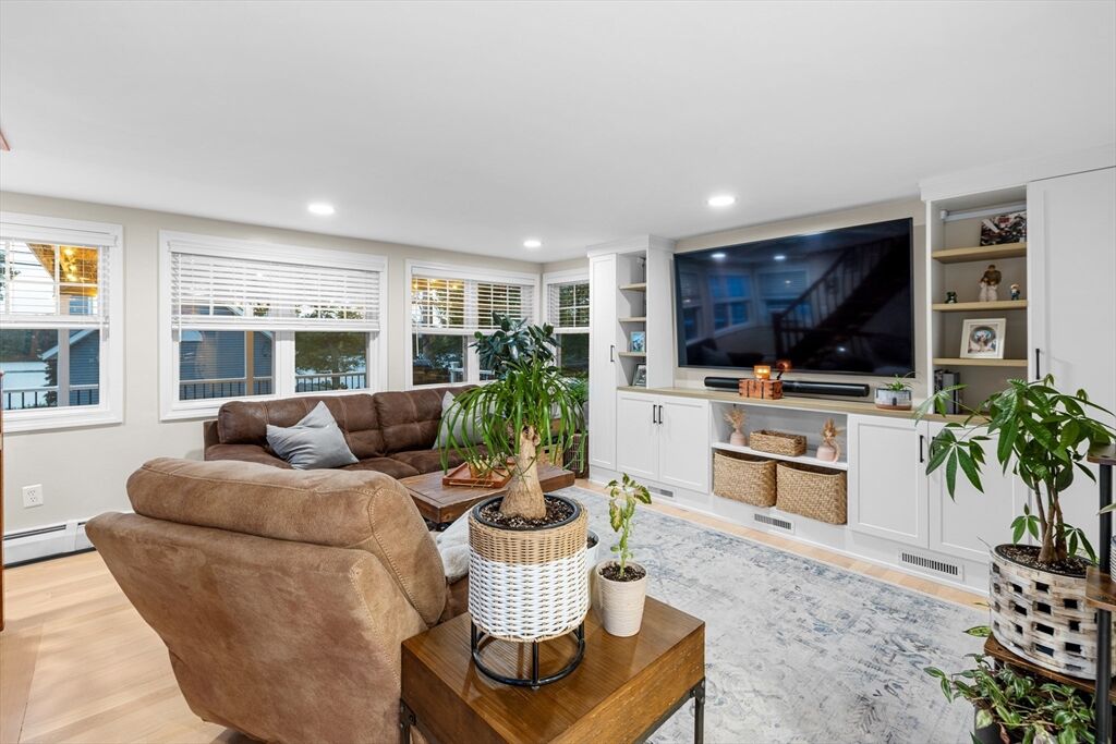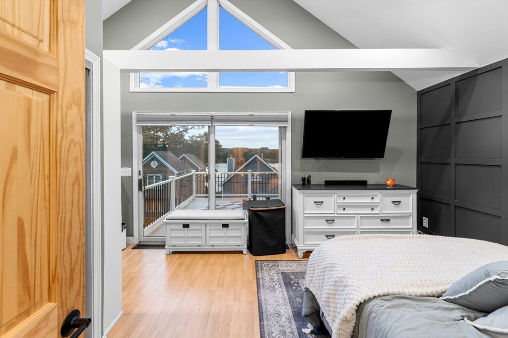 Discover unparalleled tranquility at your breathtaking, lakefront retreat. Custom-built and meticulously maintained. This 3 bedroom, 2 bath home offers the perfect blend of modern elegance, relaxation, natural beauty and fun! Featuring hardwood floors, a completely reimagined kitchen with quartz countertops, stainless steel appliances, and updated lighting throughout. The expansive wall of windows perfectly frames the panoramic views of South Watuppa Pond. Custom built cabinets in the living room, create the perfect backdrop for entertaining! The serene primary suite boasts soaring vaulted ceilings, a scenic loft, and a private balcony with peaceful water views. The massive composite decks will extend your living space outside, offering amazing water views and first-class sunsets. The finished, walkout lower level, and beautifully landscaped lot are perfect for entertaining. This is more than a home; it's a year-round vacation. Don't miss this rare opportunity for exclusive lake living