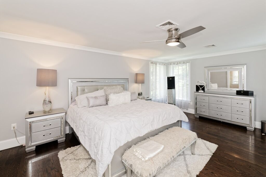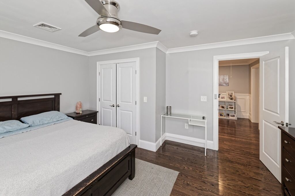 Bedroom 2 | Ceiling Fan(s) Flooring - Hardwood Crown Molding |