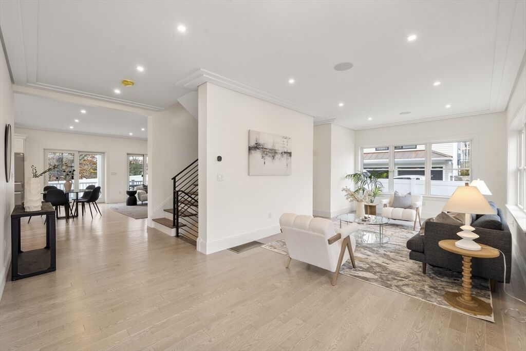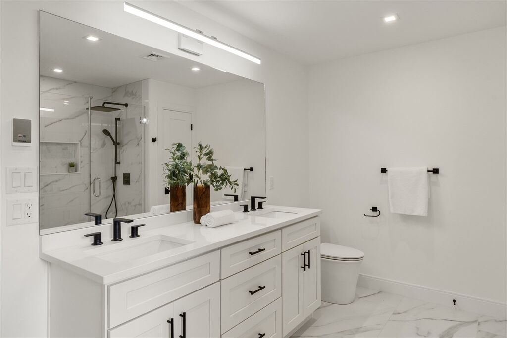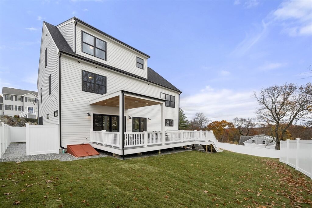 EXCEPTIONAL NEW CONSTRUCTION - 5BR - 4.5BA - COLONIAL. Styled in a modern palette, this house makes a statement in all the right ways. Gorgeous tree top view overlooking Melrose all the way to the Boston skyline! Welcome home to premium craftsmanship, high efficiency systems, and upgrades throughout. 400 AMP electric service. Wired for E-car charging inside your 3 bay - epoxy coat finished - garage. Ceiling mounted - indoor/outdoor - 14 speaker - 7 zone sound system. Custom built wet-bar w/ built in beverage center. Custom stair rails through 4 finished levels. RADIANT HEAT FLOORING in the primary BA. Dual walk-in closets for the primary suite. 2nd floor laundry w/ sink. Spacious eat-in kitchen. Double Anderson sliders. Huge covered deck complete with overhead lighting and speakers. 3rd floor living suite w/ full bath, bedroom, study and great room. HOME OFFICE. HOME GYM. This is a special location and rare opportunity. Schedule your private tour today.