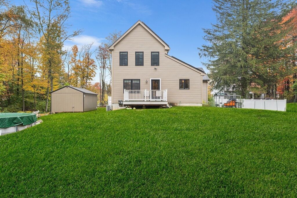 This move-in-ready Colonial really shines in one of Mendon's most desirable neighborhoods. It features a thoughtfully designed open-concept living room and kitchen, complete with a stylish backsplash and upgraded interior trim throughout. The primary bedroom on the first floor offers a cozy, private retreat. Outside, you'll find charming front and back porches with durable composite decking and rail systems, high-efficiency Anderson windows, a custom cottage-style garage door, and a delightful above-ground pool. The private yard that is a true homesteader's dream. The established gardens feature productive peach and fig trees, plus abundant blueberry bushes, strawberries, and raspberries. Built in 2017, this home offers 1910 square feet of comfortable living space on a spacious lot. With three bedrooms and 2.5 bathrooms, it's a wonderful opportunity for elegant, relaxed living. Enjoy garden bounty and modern comfort, with an option for a chicken coop if desired.