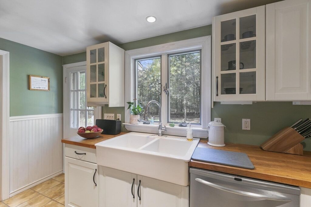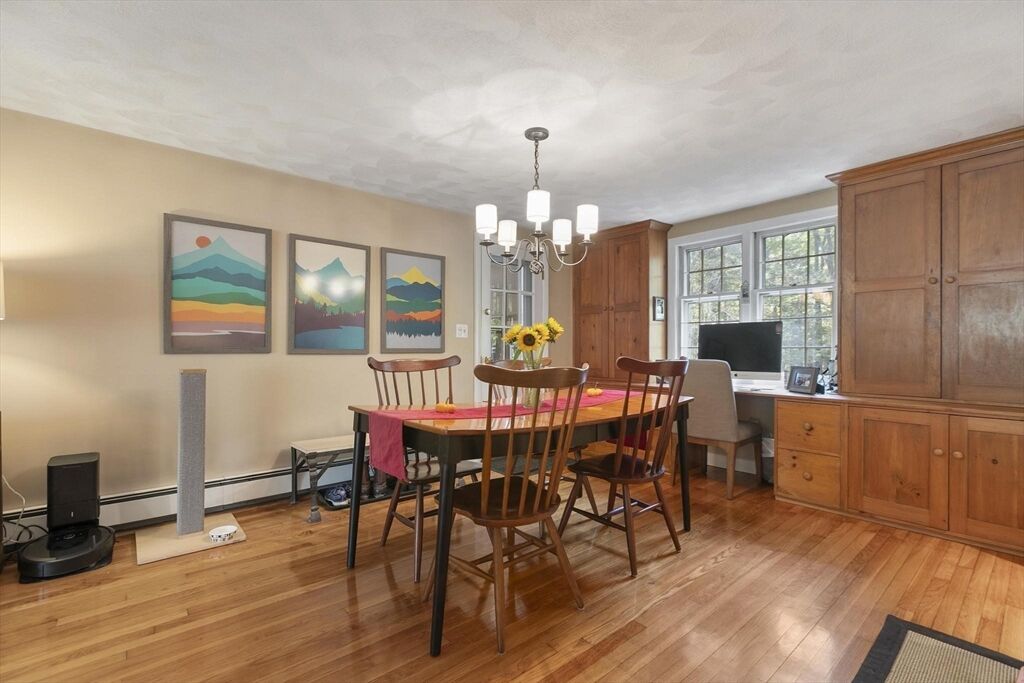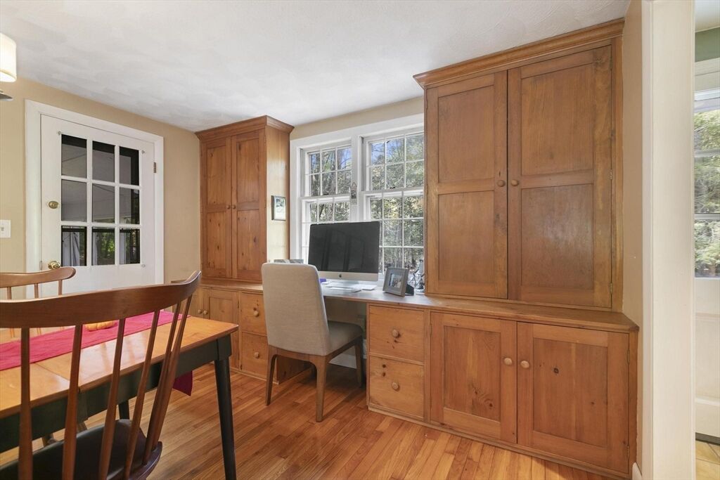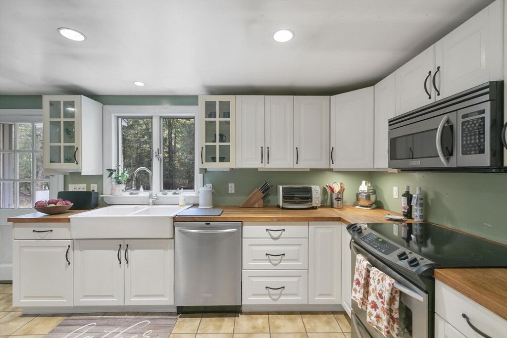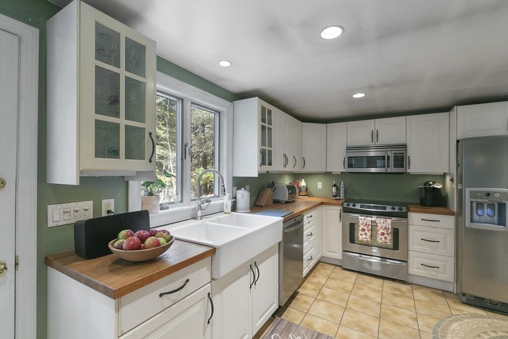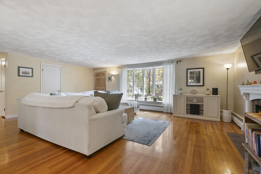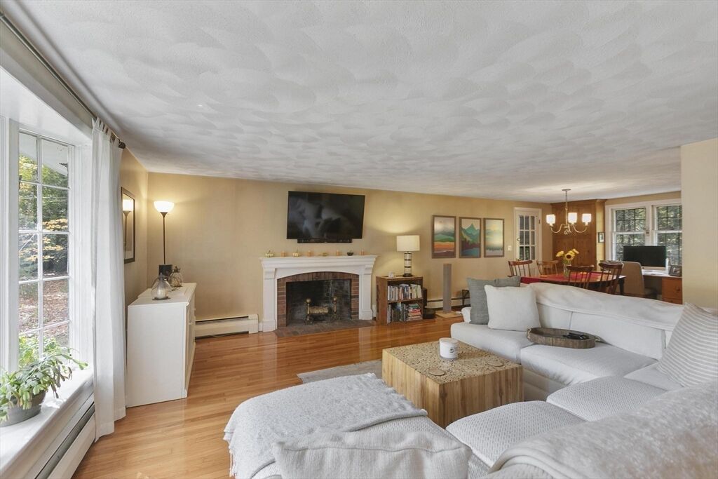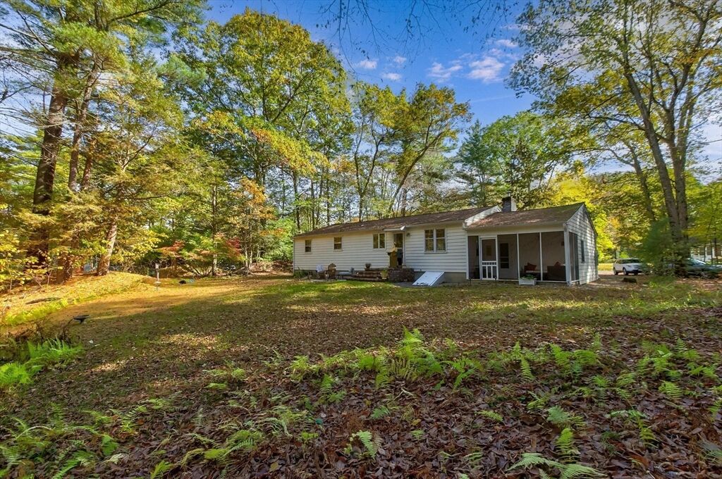 Situated on a picturesque, tree-lined street, this charming ranch offers an open-concept design with an effortless flow throughout. The oversized living room welcomes you with gleaming hardwood floors, a cozy fireplace, and abundant natural light. The formal dining area and kitchen—complete with stainless steel appliances—make entertaining and everyday living a pleasure. Three comfortable bedrooms and 1.5 baths provide ideal single-level living, while a custom built-in desk adds style and function to your workspace needs. Enjoy the beautiful three-season porch overlooking a private, expansive yard—perfect for morning coffee or relaxing evenings. Better Weather? Step outside to the patio and soak in the peaceful surroundings. The lower level offers incredible potential with generous space and a built-in sauna, creating a spa-like retreat right at home. With a one-car garage and a location just one mile from the commuter rail, this home combines country charm with modern convenience.