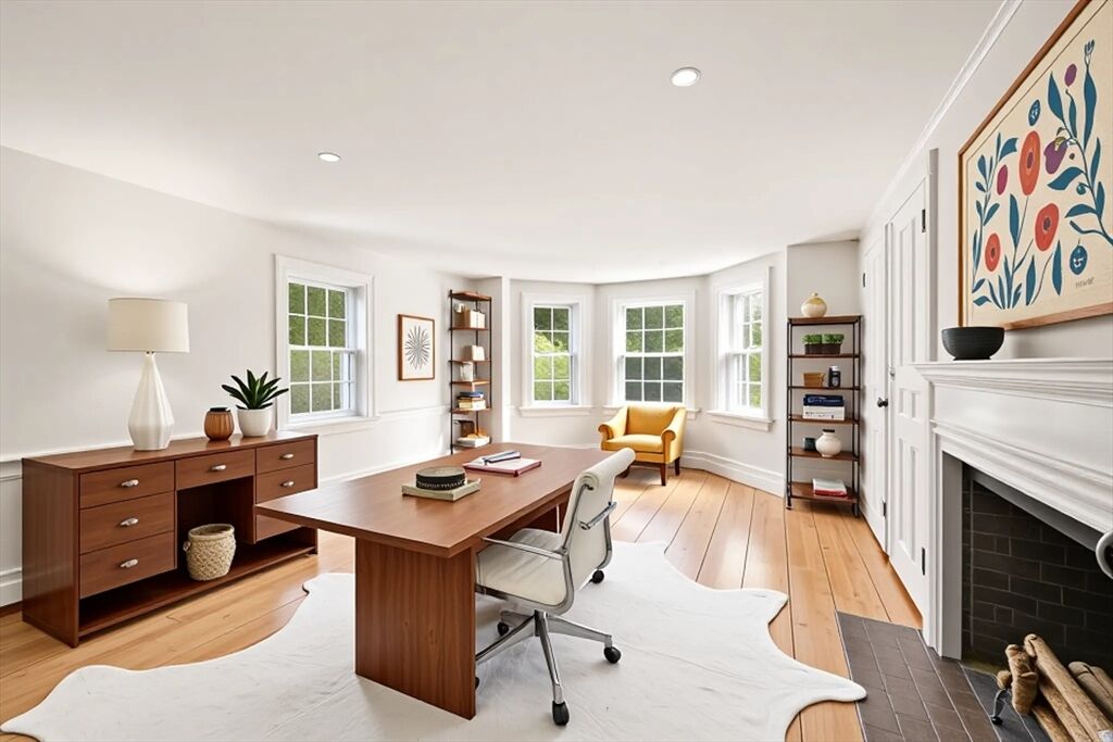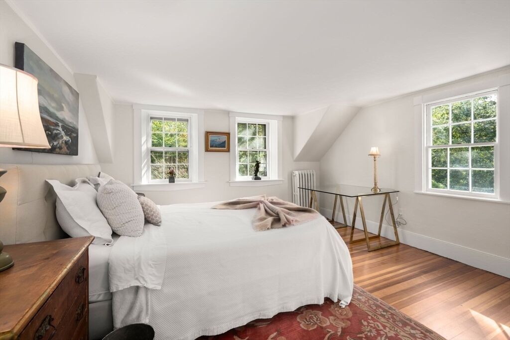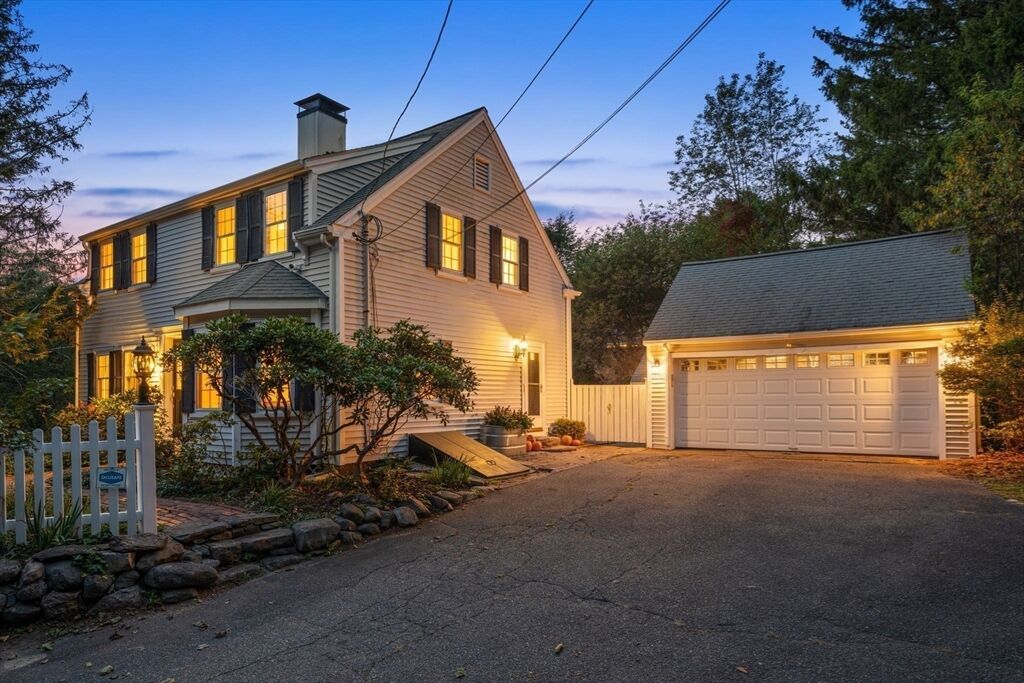 Escape to the country while staying close to the city in this updated antique Colonial on Wenham’s scenic Larch Row. Set on nearly an acre with perennial gardens, stone walls, and a shallow skating pond, the property offers an idyllic retreat surrounded by nature. The interior blends historic character with modern convenience, featuring an open floor plan with radiant-heated floors, two wood-burning fireplaces, and a versatile first-floor office or bedroom. The sunroom features a gas fireplace and stunning year-round views of the yard and wildlife. Upstairs includes a deluxe primary suite with ensuite bath, two additional bedrooms, second full bath, and laundry. Additional highlights include wide-board flooring, a two-car garage, two paved driveways, hot tub, fresh paint, extensive built in storage, and numerous updates including a high-efficiency heating system, electrical upgrades, appliances, and generator hookup. This sunny New England home offers privacy, convenience, and calm.
