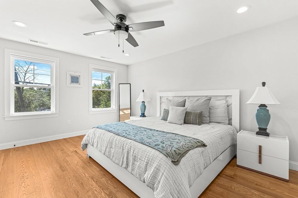 NEWER CONSTRUCTION! This 2020 home showcases 5 beds, 4 baths-4300sf of style & luxury situated on the corner of Loring Ave. The home features high ceilings, hardwood floors & a stunning sunny open floor plan w/ eat in kitchen, center island, custom cabinetry, stainless appliances & walk-in pantry. Formal dining room & dramatic oversized family room will impress, featuring vaulted ceilings, gas fireplace and plenty of windows.The first floor also includes a bedroom suite w/ full bath! Upstairs you'll find 3 spacious bedrooms, including the primary suite w/ walk-in closet & beautiful en-suite bath w/ large shower, tub & double vanity sinks. Additional BR5 & bath on the 3rd fl. The finished lower level offers a family room w/ bar & large media/playroom. A fenced in yard, deck/ patio & direct entry two-car garage complete this home. Enjoy all the area has to offer including McDonald field playground, restaurants, shops, schools, train to Boston, Bike-paths & more! Only 7 miles from Boston!