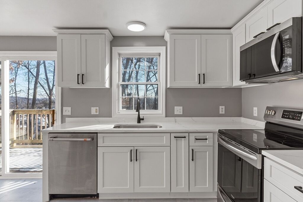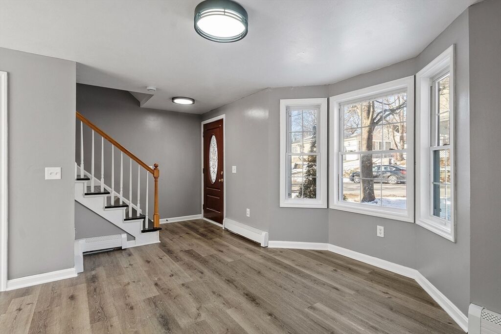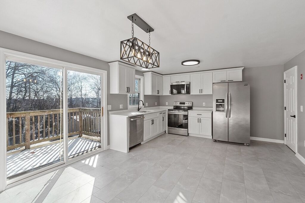 NO CONDO FEES! Enjoy stylish, low-maintenance living in this renovated three-story half-duplex townhouse. The main level offers a spacious living room and an eat-in kitchen featuring granite countertops, stainless steel appliances, and a slider to your private deckâperfect for entertaining. Upstairs, two generously sized bedrooms and a full bath provide comfort, while the third floor offers a versatile bonus room for a bedroom, office, media space or family room. The lower level includes a laundry area, ample storage, and direct access to a one-car garage. Fully renovated, off-street parking, and easy access to Route 495, bus routes, and the T station, this home combines convenience and sophistication.