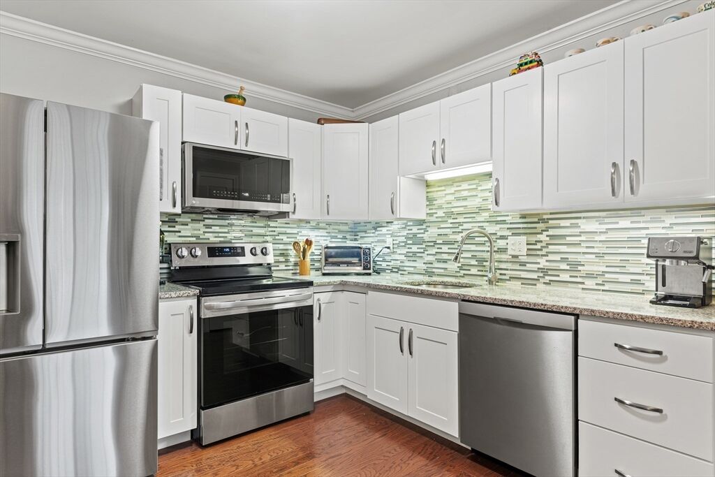 Welcome home to 24 Shayne Road, Unit 219, located in the highly sought-after Franklin Heights community. With construction finishing in 2013, this young and meticulously maintained second-floor home offers a bright, open-concept layout with numerous updates throughout. The custom kitchen features granite countertops, a tiled backsplash, under-cabinet lighting, and seamlessly flows into the dining area and spacious living room, which includes a slider to a private balcony. The unit offers two generously sized bedrooms, including a primary suite with a walk-in closet outfitted with built-ins and an en-suite bath. A second full bath off the hallway is ideal for guests. Additional highlights include an oversized in-unit laundry room with ample shelving, hardwood flooring throughout, Central A/C, crown molding, recessed lighting, two parking spaces, and a large deeded storage room in the basement. This exceptional home is the perfect blend of comfort, convenience, and modern living.