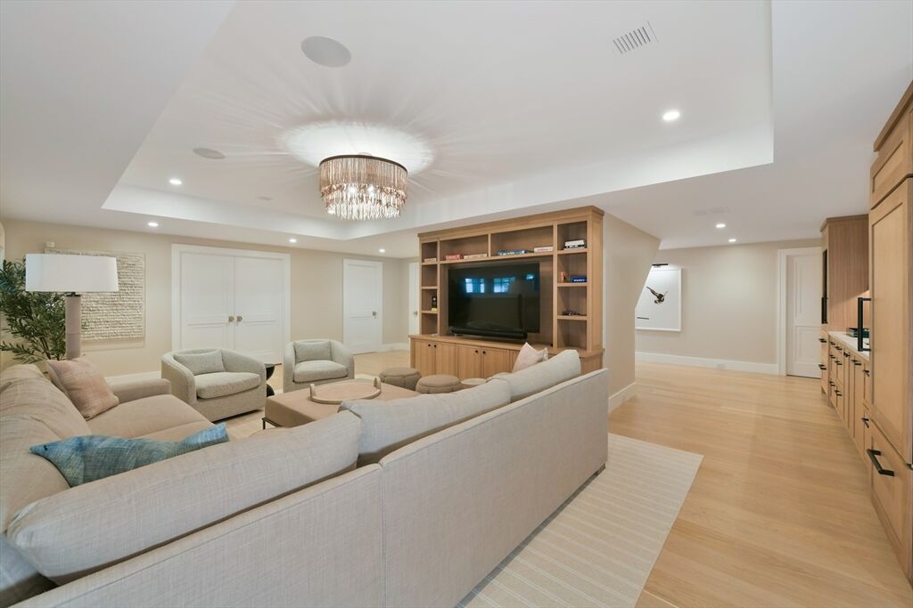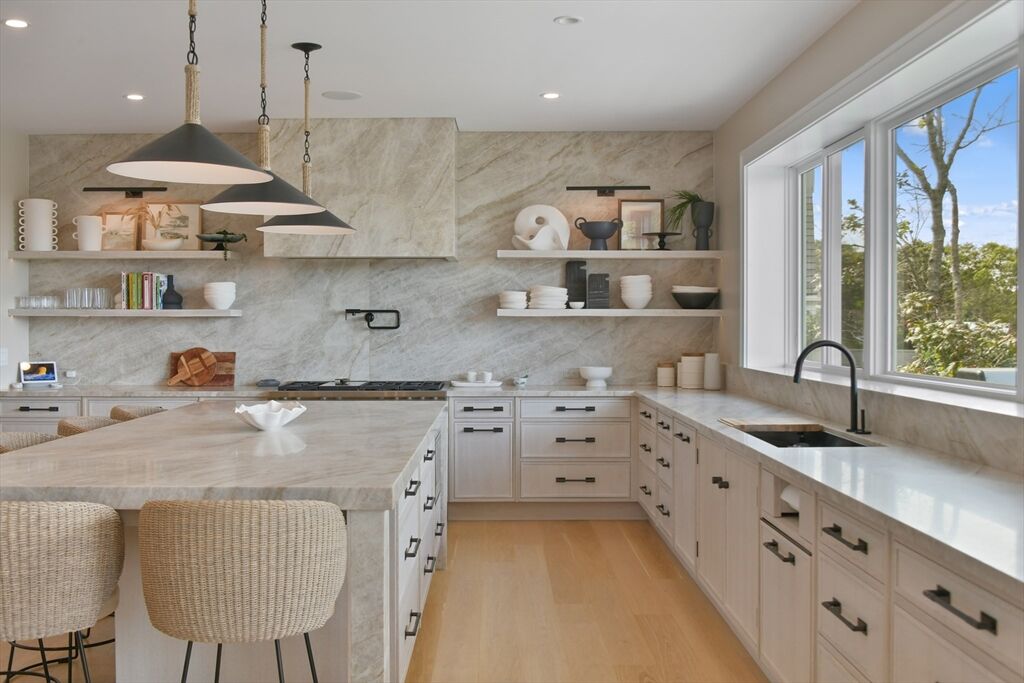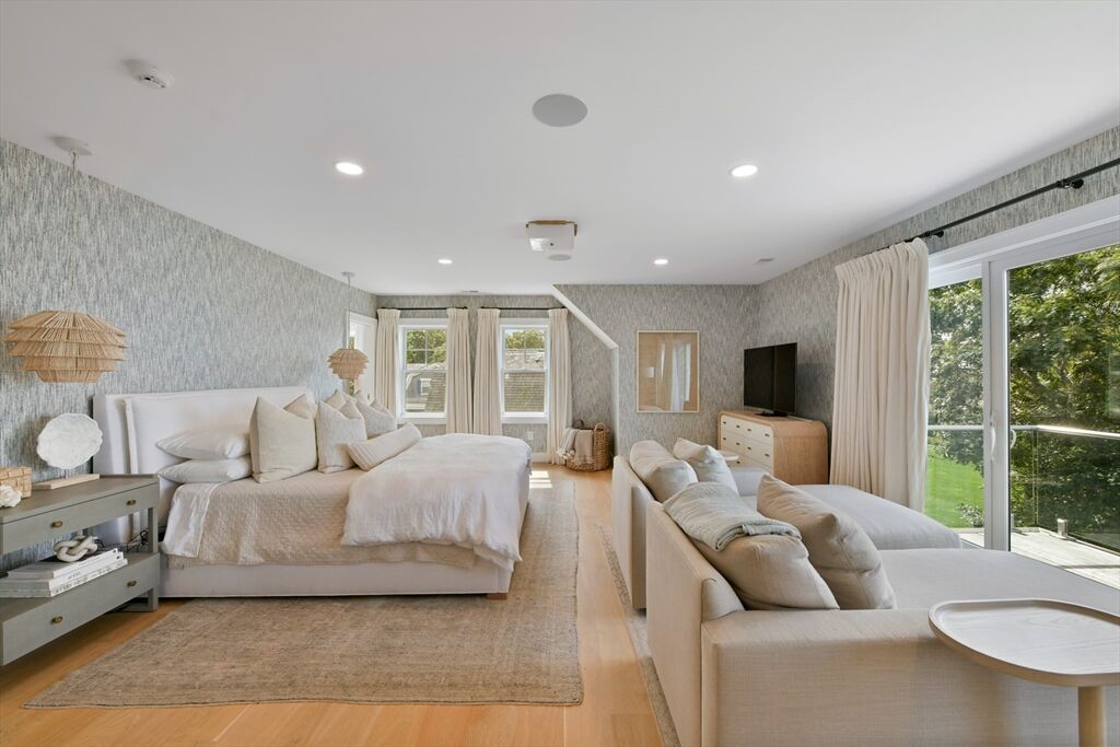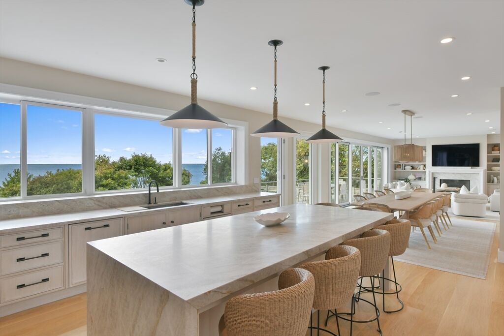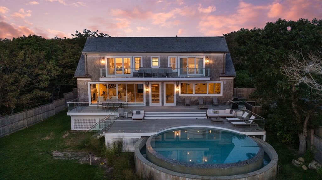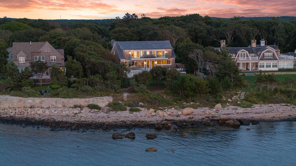 This stunning waterfront home is nestled within a coveted North Falmouth community and offers a private beach and association dock. Completely reimagined by an elite team of designers and builders in 2023, this sophisticated 5-bed residence features sweeping ocean views and spectacular sunsets! High-end finishes, custom hardwood floors, tile, stone and millwork are found throughout this special home. Entertainers delight with a large open-concept first-floor that centers around a stunning chef's kitchen. The home office, den, lower level lounge, gym, sauna, and steam rooms provide space for retreat, or large scale gathering. The resort-like exterior with large front lawn, gardens, sundeck and infinity-edge pool create the perfect setting for both relaxation or family activity. A private path with direct beach and water access is a real treasure. This oceanfront property epitomizes sophisticated coastal living, blending thoughtful design with modern systems in a convenient location.