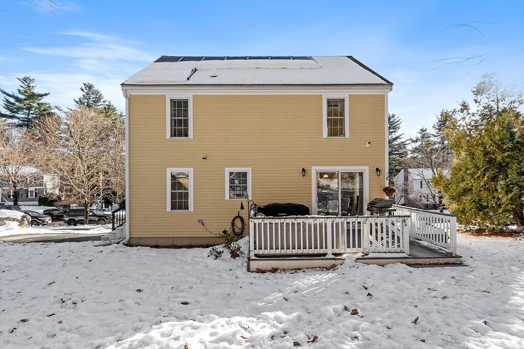 Welcome to Stoneybrook Village! Nestled in a peaceful cul-de-sac within a sought-after, family-friendly neighborhood. This move-in-ready Colonial offers 3 bedrooms and 1.5 baths. The spacious kitchen features an open-concept layout with a bar-stool seating area flowing right into the dining room—perfect for entertaining. Sliders off the dining room lead to a back deck and yard, ideal for enjoying those warm summer nights. The living room is filled with natural light from multiple windows and flows nicely toward the conveniently located half bath, while the washer and dryer are tucked neatly into a main-floor closet for everyday ease. Upstairs, you’ll find three comfortable sized bedrooms, a full bath and plenty of closet space. The basement is packed with potential—finish it for extra living space, a game room, home gym, or the ultimate hangout spot, or keep it as the perfect bonus space with tons of storage. Comfort, space, and easy living—this one checks off all the boxes!