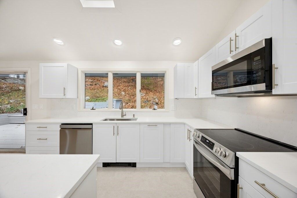 Nestled in the scenic Mt. Pisgah area of Northborough, this newly remodeled contemporary home is a must-see. The open-concept living room, dining room, and kitchen form a remarkable space with a high vaulted ceiling that creates an airy, expansive feel, while the fireplace adds a warm and inviting focal point. The new kitchen is the heart of the home a culinary haven featuring quartz countertops, custom cabinetry, center island, recessed lighting, and stainless-steel appliances. The primary bedroom offers double closets and a private updated bath. Two additional bedrooms and a home office—all with closets—provide ample flexibility. A bright family room with a slider opens to a large deck, perfect for outdoor living. The finished lower level adds valuable bonus space along with a utility room. Additional highlights include a two-car garage, central air, freshly painted interior and exterior, updated systems, large expansive deck with pool. Enjoy easy access to nearby Mt. Pisgah trails.