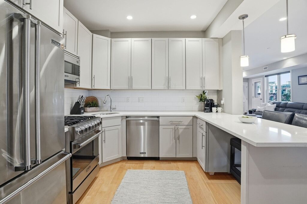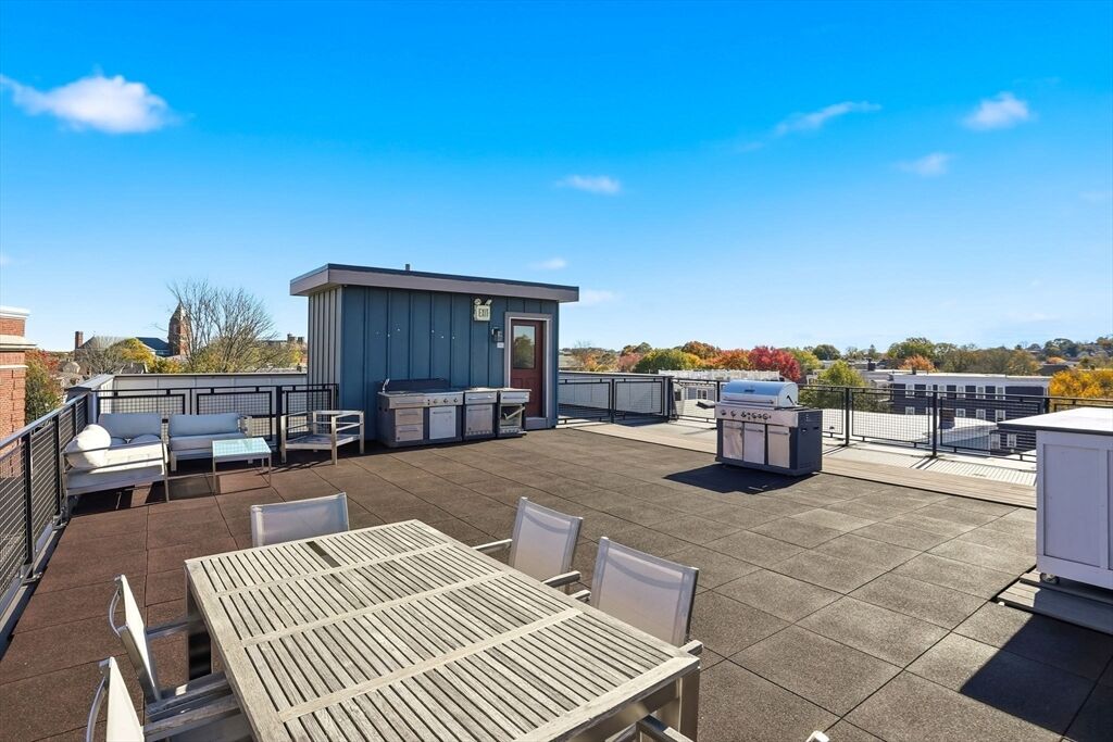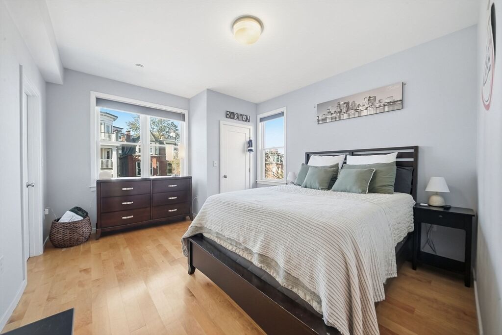 Welcome to 246 Boston Street! This stunning condo offers modern living in a prime Dorchester location, just 10 minutes to Downtown Boston, near JFK & Andrew stations/ I93, and moments from neighborhood favorites like South Bay Shopping Center, 224 Boston, and Dorchester Brewing Co. This bright, contemporary home features an open-concept layout, hardwood floors, and high-end finishes throughout. The chef’s kitchen showcases quartz countertops, stainless steel appliances, shaker cabinetry, and a large peninsula—perfect for cooking and entertaining. The bedrooms are well-appointed, both offering walk-in closets and en-suite baths, while the half bath is ideal for guests. Additional amenities include central A/C, in-unit laundry, extra storage, AND off-street parking. Enjoy two outdoor spaces: a private deck with a gas grill hookup, plus a spacious common roof deck with a bar, outdoor TV, and beautiful skyline sunset views. This professionally managed condo has it all!