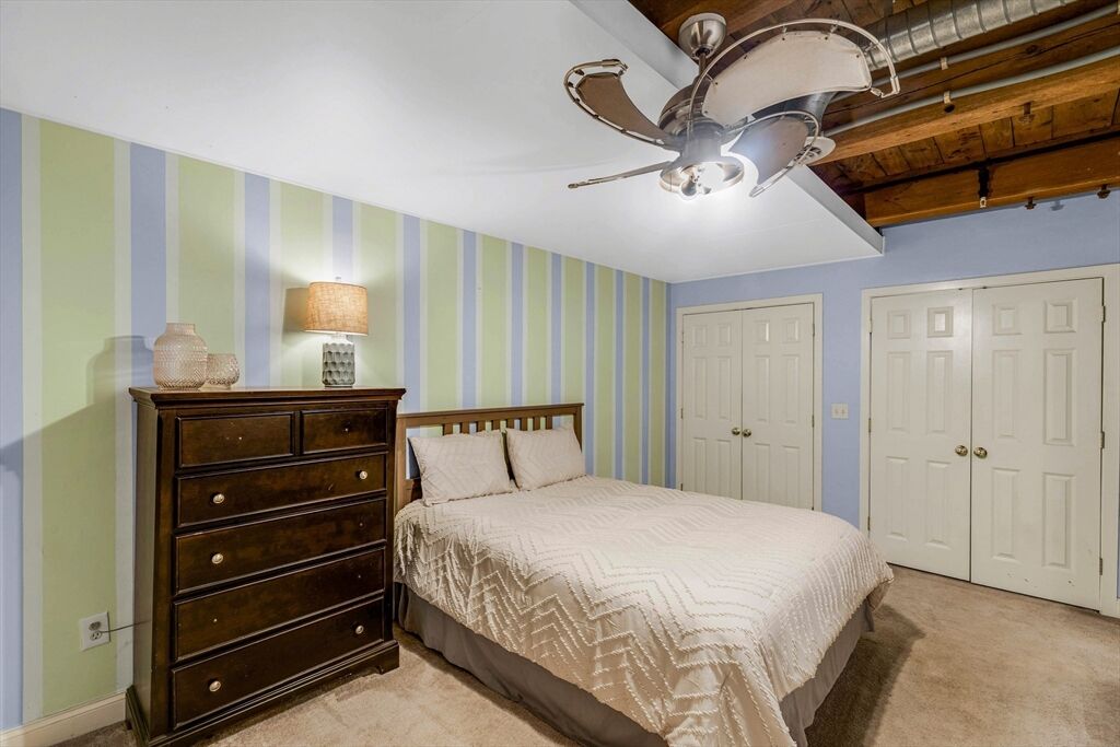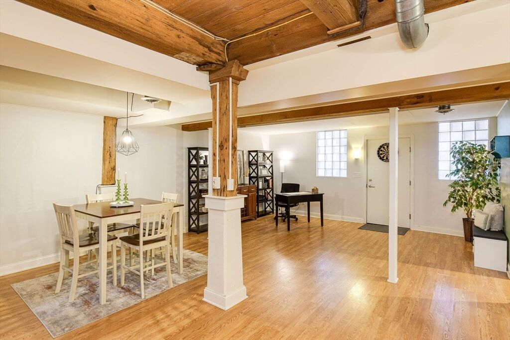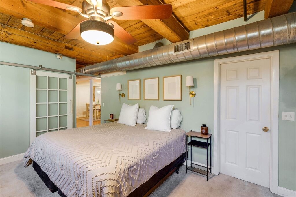 Charming verstile condominium in great condition. Featuring a spacious open floor plan with kitchen island thats perfect for entertaining or casual dining. Exposed beams throughout give it a vintage charm while keeping a warm and inviting atmosphere. Big bedroom with double closet, large bathroom and in unit laundry. This unit has a second room off the main living area that can be used as a bedroom or office. Natural gas heat and Central air. Move in ready in fantastic location, walking distance from all that downtown Amesbury offers; shops, dining, bike paths, trails, Cedar Hill Farm and only a few miles to routes 95 and 495. There is an elevator, extra storage area and terrific outdoor common space with grills, gazebo and Clarks Pond. Move in condition with the special assessment paid in full by seller. Come See! Open Houses on Saturday Nov. 8th and Sunday Nov. 9th from 12-1:30pm.