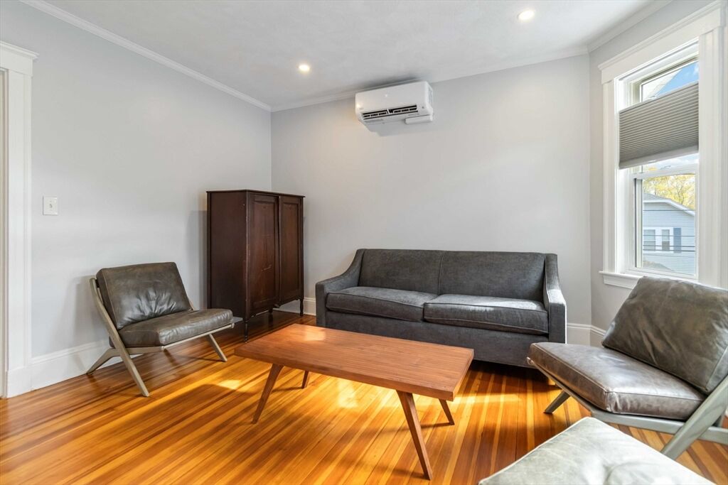 Welcome to 25 Oakland St, Unit 2 — where modern comfort meets timeless New England charm.This beautifully renovated 3-bedroom, 1-bath condo offers 1,170 sqft. of thoughtfully designed space, blending style, functionality, and a prime Watertown location. Sun-filled rooms with refinished hardwood floors, high ceilings, and updated fixtures create a warm, inviting atmosphere.Enjoy worry-free living with a brand-new roof and new high-efficiency heat pumps. The modern kitchen showcases sleek cabinetry and new stainless steel appliances, perfect for entertaining or everyday dining. Fully owned solar panels—soon operational—will power heat and electricity, offering INSTANT savings and sustainability. Two deeded tandem parking spaces provide convenience. Near Arsenal Yards, Watertown Square, and the Charles River Greenway, enjoy easy access to shops, restaurants, dog parks, and trails. With an 86 Walk Score, this home combines charm, efficiency, and commuter ease—a true Watertown gem!