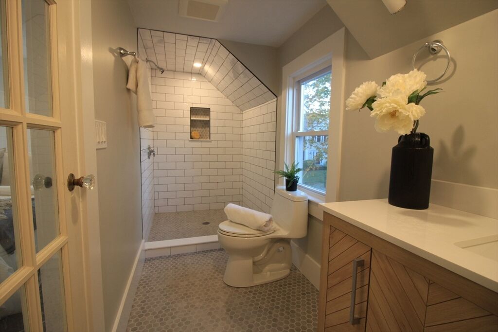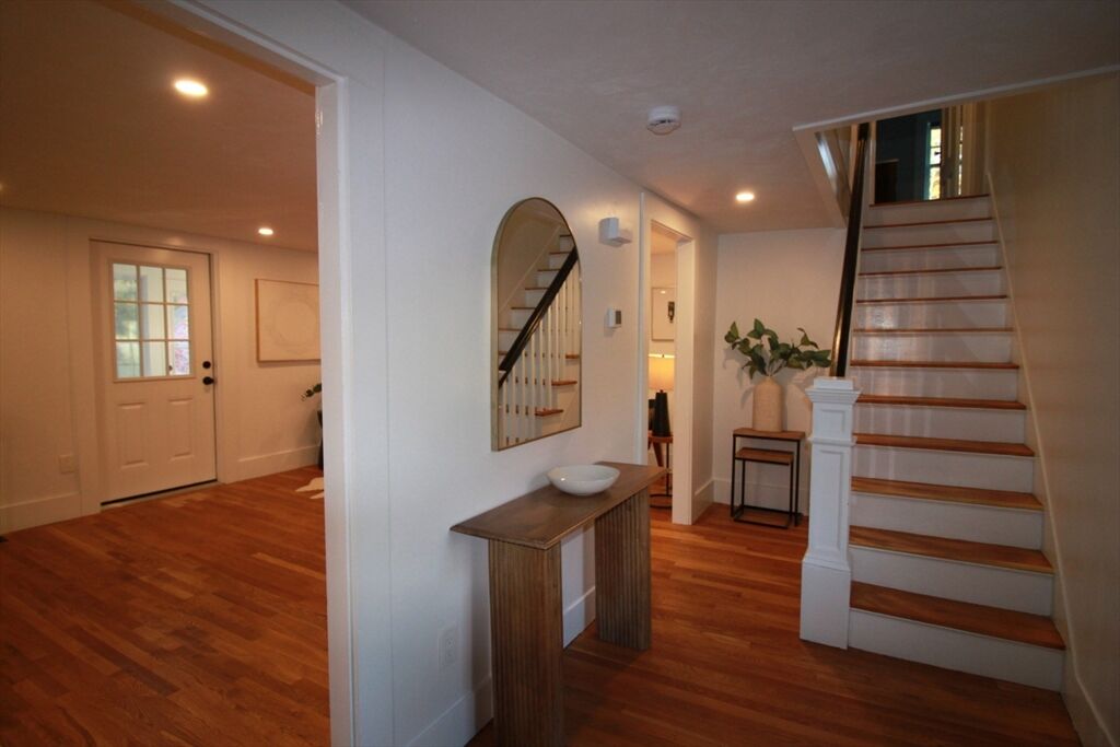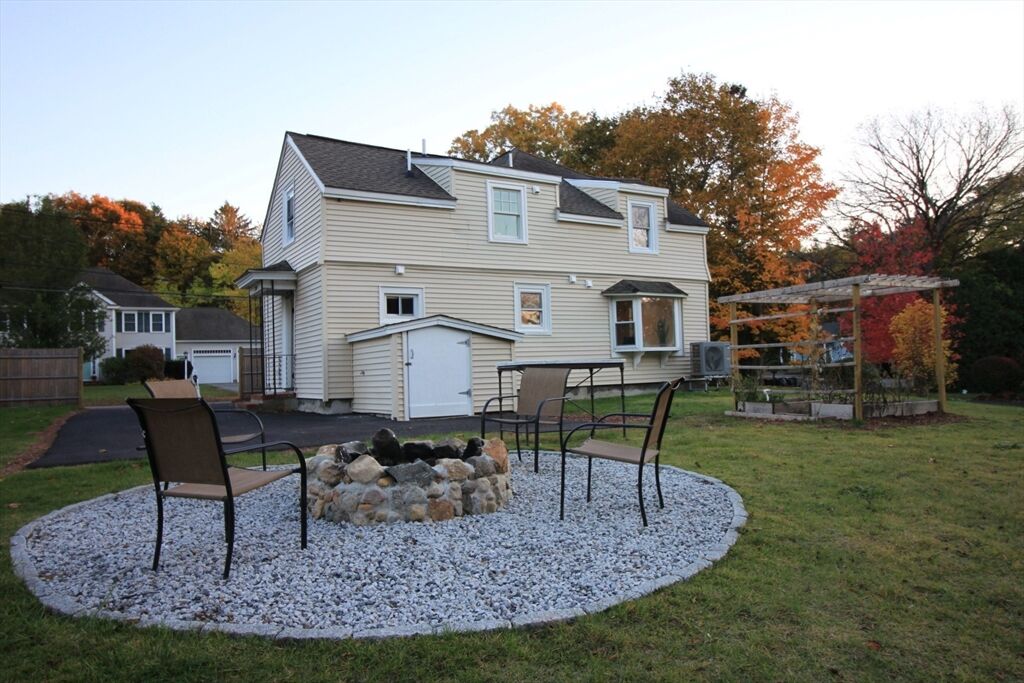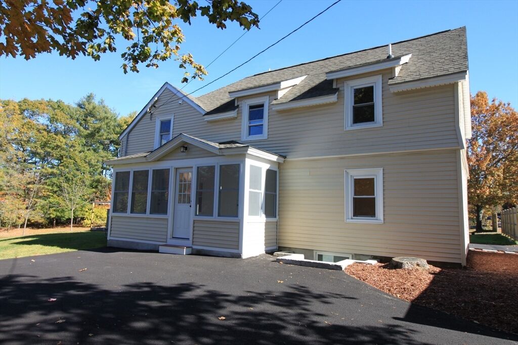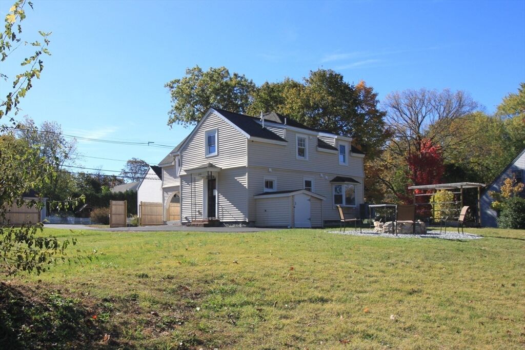 Extensively renovated 4 Bedroom 3.5 Bath Colonial Farmhouse c.1875 sited on level .87-acre lot. The work has been completed. Now just hang your pictures! 200-amp Elect. Service, Tiled Bathrooms, Kitchen w/ SS Appliances, FHA, Central AC, HW Heater, Recessed Lighting throughout, Insulated Walk-up Attic for Storage, Privacy Fence, up-graded Parking, and more. The eat-in Kitchen provides ample white Storage Cabinets and Bay Window with views of open back yard and crushed stone patio w/ fieldstone firepit. Close by is a Half- Bath and tiled 17 ft Sunroom with exterior access. Unique ground floor configuration offers a Home- Office / Guestroom with its own entrance, a Full Bath, Counter with Cabinet and Sink for the coffee maker. The 28 ft Living Room affords plenty of space for entertaining. Upstairs are the Primary BR with a 13 ft en-suite Bathroom, 3 more BRs, a Full Bath and Hall Laundry. Hardwood floors grace the home. The Lower Level offers 424 sf of finished space for activities.