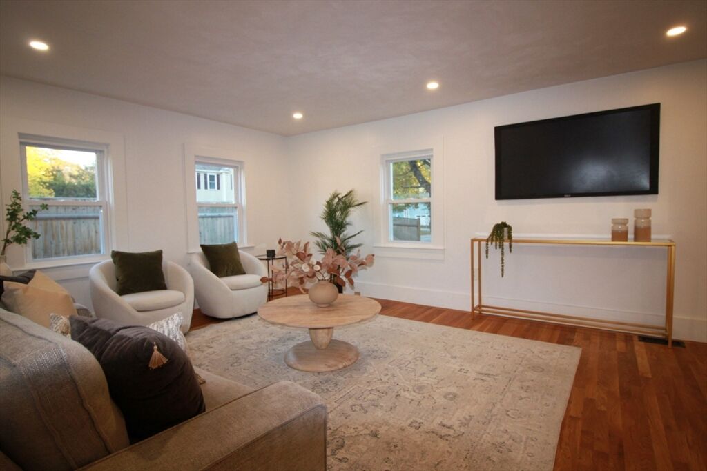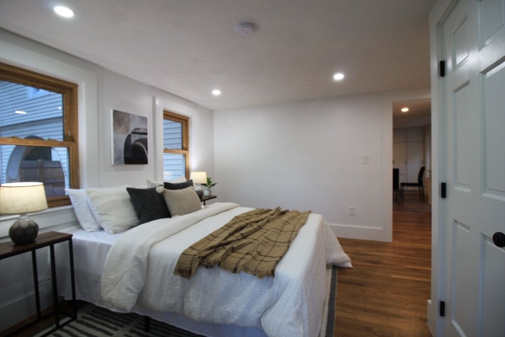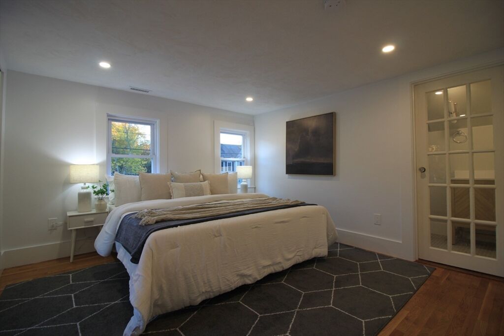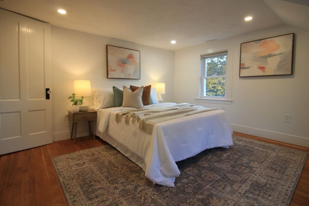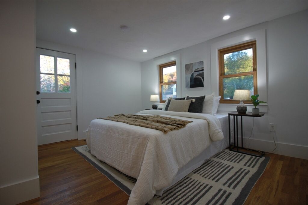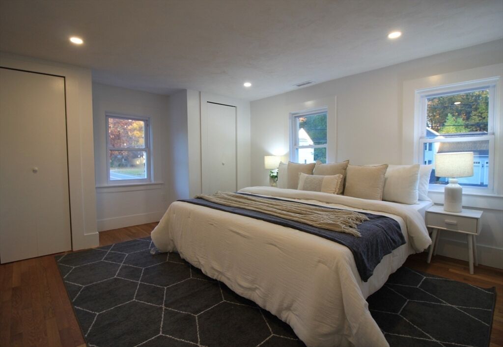 Extensively renovated 4 Bedroom 3.5 Bath Colonial Farmhouse c.1875 sited on level .87-acre lot. The work has been completed. Now just hang your pictures! 200-amp Elect. Service, Tiled Bathrooms, Kitchen w/ SS Appliances, FHA, Central AC, HW Heater, Recessed Lighting throughout, Insulated Walk-up Attic for Storage, Privacy Fence, up-graded Parking, and more. The eat-in Kitchen provides ample white Storage Cabinets and Bay Window with views of open back yard and crushed stone patio w/ fieldstone firepit. Close by is a Half- Bath and tiled 17 ft Sunroom with exterior access. Unique ground floor configuration offers a Home- Office / Guestroom with its own entrance, a Full Bath, Counter with Cabinet and Sink for the coffee maker. The 28 ft Living Room affords plenty of space for entertaining. Upstairs are the Primary BR with a 13 ft en-suite Bathroom, 3 more BRs, a Full Bath and Hall Laundry. Hardwood floors grace the home. The Lower Level offers 424 sf of finished space for activities.
