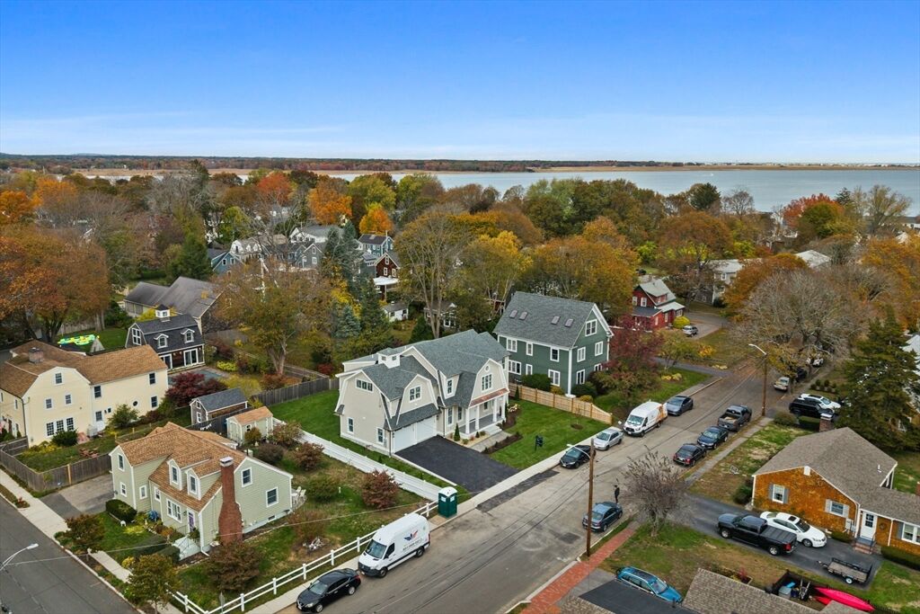 Brand-new construction with classic New England shingle-style architecture and modern luxury, offering 4,600 sq. ft. in one of Newburyport’s most desirable neighborhoods. Featuring 4 bedrooms, 4.5 baths, and a 2-car garage, this home blends timeless curb appeal with thoughtful design. The gambrel roofline, cupola, copper accents, and welcoming front porch reflect coastal New England tradition. Inside, white oak hardwood floors, Anderson “A”-Series windows, and full-house soundproofing showcase quality craftsmanship. Modern mechanicals feature hydronic forced air with 3 climate zones, dual ERVs, and a high-efficiency Navien tankless water heater. Pre-wired for EV charging, solar, security, and whole-home audio. Finished with Hardie shingles, maintenance-free PVC trim, and landscaped grounds. Luxury, design, and location — all aligned in one home that defines Newburyport living.