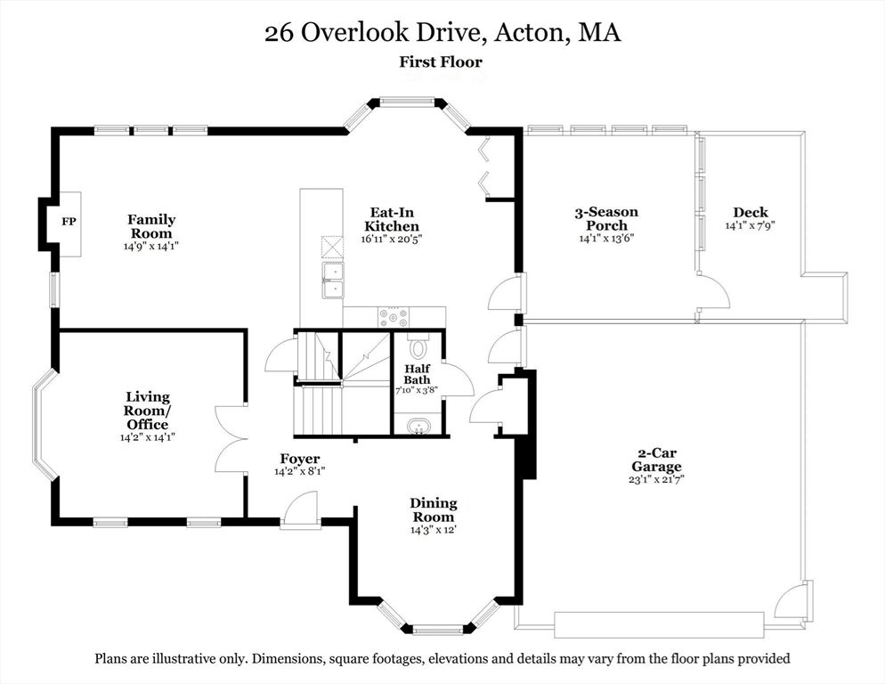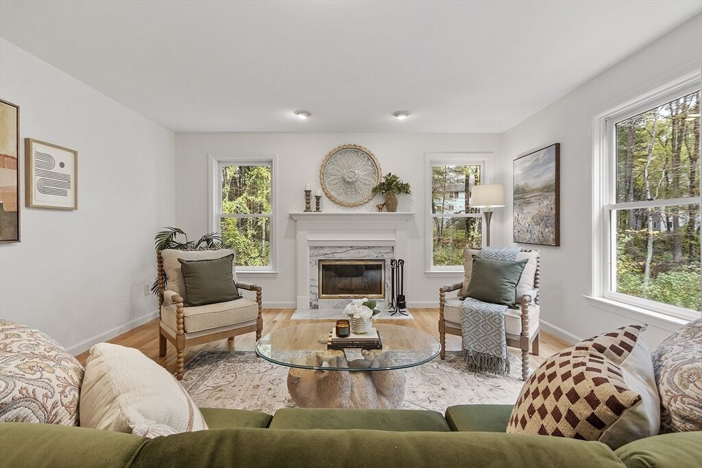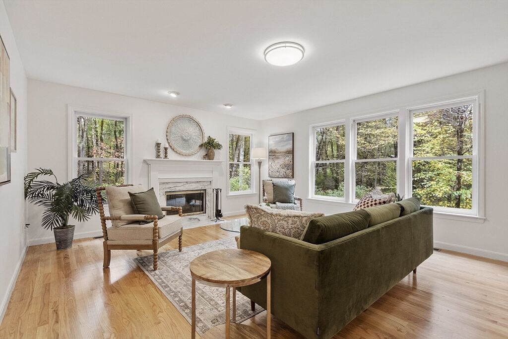 Welcome to 26 Overlook Drive, a gracious four bedroom Colonial set at the end of a quiet cul-de-sac in South Acton on 3.6 acres bordering scenic conservation trails! Sunlight fills the welcoming interior, where an eat-in maple kitchen with a peninsula opens to the spacious fireplaced family room. French doors lead to a flexible living room or office, and the formal dining room adds classic appeal. The private primary suite with spa bath and a walk-in closet is thoughtfully separated from the additional bedrooms, full bath, and laundry, providing a peaceful retreat. A finished walk-out lower level offers space for play, work, or relaxation and you’ll love the serene wooded views from the three-season porch. With a two-car garage, central air, and access to the award-winning Acton-Boxborough schools, this home combines space, privacy, and convenience just a mile from Jones Field Playground and the MBTA rail to Boston and Cambridge. Make your appointment to visit today!