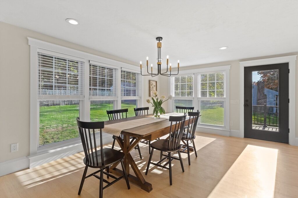 Step into timeless style in this exceptional, UPDATED 5BR Colonial where classic features~hdwds, moldings~meet modern luxury & amenities. The gourmet KIT, w/high-end finishes & seamless flow to the GR and Living RM, a perfect space for both lively gatherings & quiet evenings. The sunroom, bathed in natural light will become your favorite space! The flexible 1st fr plan offers a versatile space for BR, guest room, office or playroom. Upstairs your primary suite: a private sanctuary, showcases a spa-inspired bath w/soaking tub, custom-tiled shower, & dual vanity, laundry room, FBth and 3 add’l BRs. Look at what’s NEW: roof, windows, 5BR septic,boiler,hot water tank freshly painted exterior and interior, deck, grg doors, flooring, mini-splits for year-round comfort AND young oil tank. Oversized garage w/space for 3 cars, set on a corner lot extends your living space to the spacious yard. Set in the Wachusett District & outdoor activities you’re sure to be impressed ~ Welcome Home!