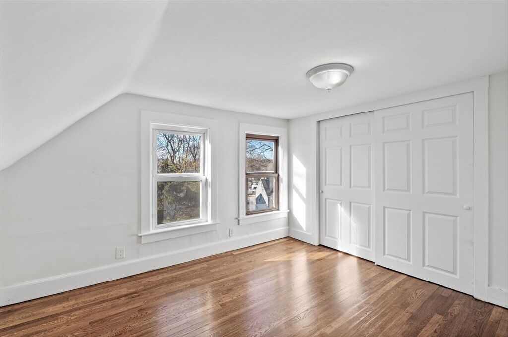 Beautifully reimagined and extensively updated, this home blends classic charm with modern comfort. A major renovation added a newer roof, updated windows, upgraded heating and cooling, fully refinished hardwood floors throughout, fresh interior paint, and a remodeled bathroom featuring smart touches. Warm and thoughtfully finished, it offers an ideal mix of character and convenience.The first level includes a versatile additional living room that can function as a third bedroom, plus a bonus room with generous storage perfect for an office or sunroom. The primary bedroom features a large walk-in closet. Outdoor spaces include a fenced side yard and a separately fenced backyard with a cabana and an extra shed, great for relaxing or entertaining. Maintenance-free vinyl siding and a driveway add everyday ease. With quick access to Route 1, I-95, Lynn Woods, parks, dining, and the commuter rail, this home delivers comfort and convenience.