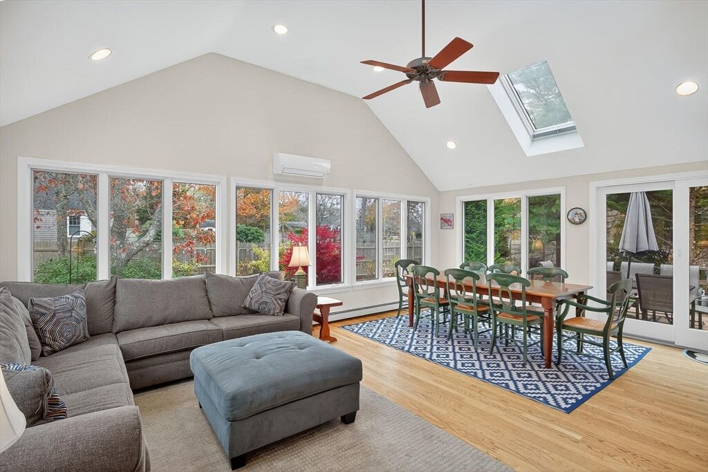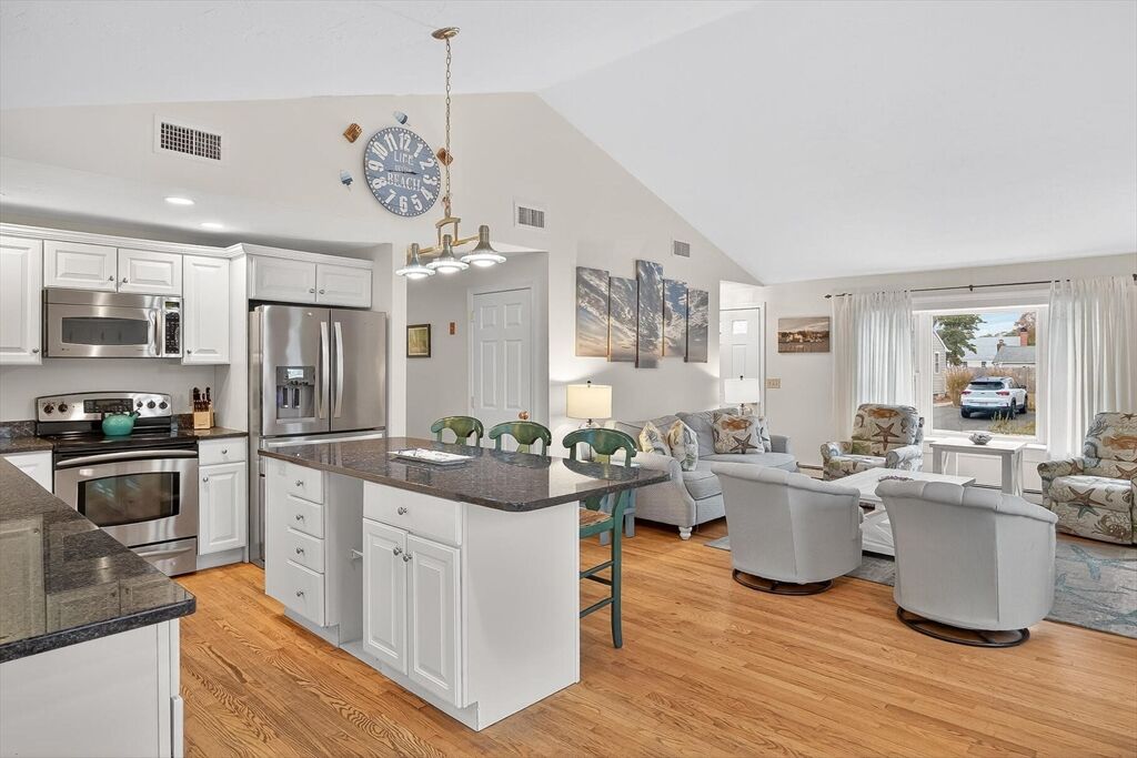 Tucked in a quiet enclave south of Rt. 28, this inviting South Chatham home blends coastal charm with modern comfort. The open floorplan welcomes you with a fireplaced living room and gleaming hardwood floors that flow seamlessly throughout. The updated kitchen features a center island perfect for casual meals and entertaining, while the spacious, light-filled sunroom offers a serene retreat year-round.The private primary suite includes a full bath, complemented by two additional bedrooms and a shared full bath for family or guests. Downstairs, the finished lower level is ideal for movie nights and game day gatherings—and yes, the shuffleboard table conveys! Enjoy close proximity to Pleasant Street Beach, local restaurants, and all that Chatham has to offer. Whether you're seeking a year-round residence or a summer escape, this home delivers Cape Cod living at its best.