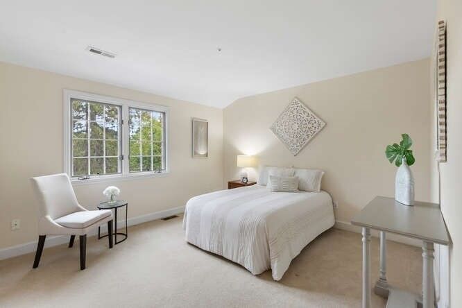 Custom built Cape Style home nestled behind New England stone walls in North Andover's most idyllic location. Sought after open and sun filled floor plan with first floor primary suite with two walk-in closets, elegant two story entry foyer, sunken formal living room with a wall of glass overlooking the lush two acre lot, step down cathedral ceilinged family room with two story stone masonry fireplace and a wall of custom book shelves that would be the envy of any bibliophile! Large kitchen with eat in area that leads to the screened in porch, pantry and desk unit and separate 1st floor laundry room. Spacious 2nd floor with loft style overlook and three generous sized bedrooms. Lots of storage nooks, full sized basement and attached 2-car garage for all your stuff! Minutes from North Andover's historic Old Center, Stevens Pond recreation area with sandy beach, swimming, fishing, and popular Weir Hill trails and Half Mile Hill. New England countryside atmosphere at its best!!